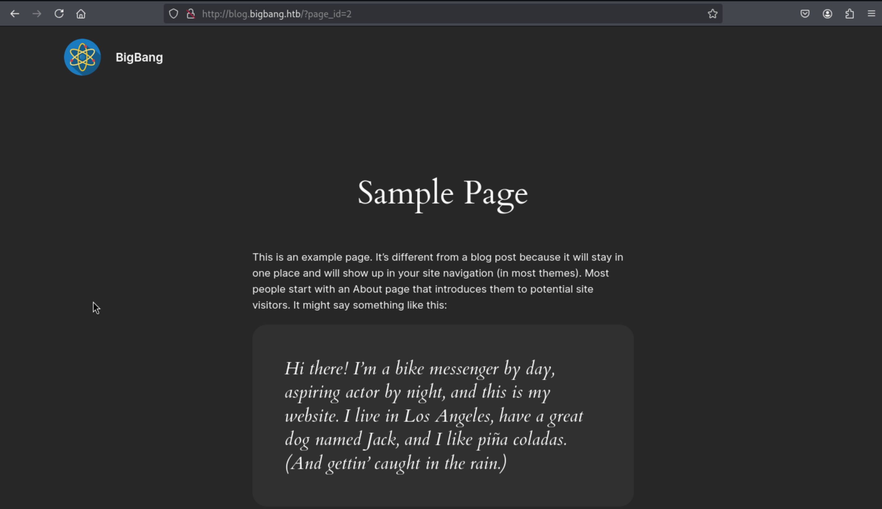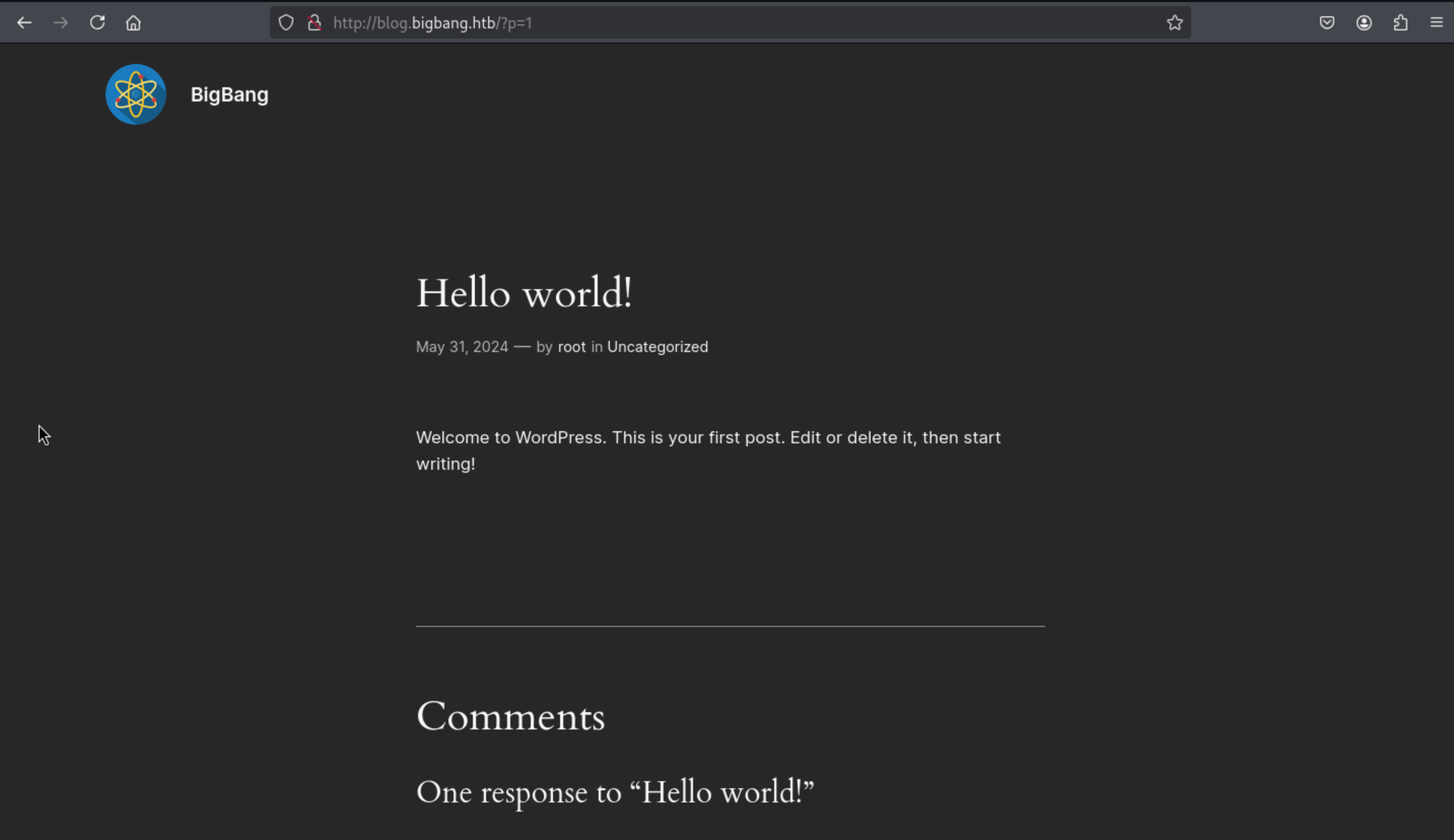 [+] The external WP-Cron seems to be enabled: http://blog.bigbang.htb/wp-cron.php