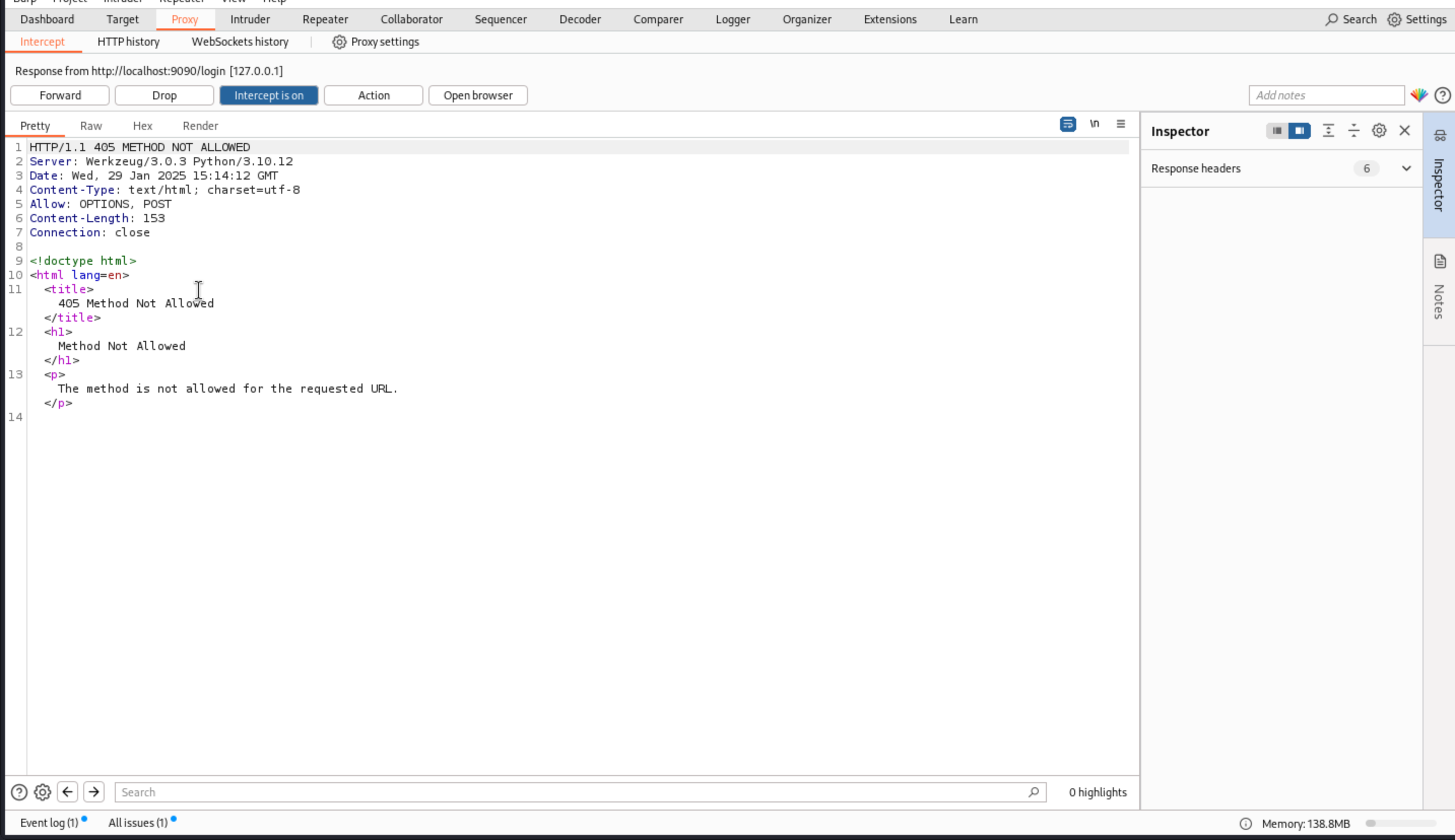 I used Burp with Proxy > Intercept. Open the browser and go to http://127.0.0.1:9090/login