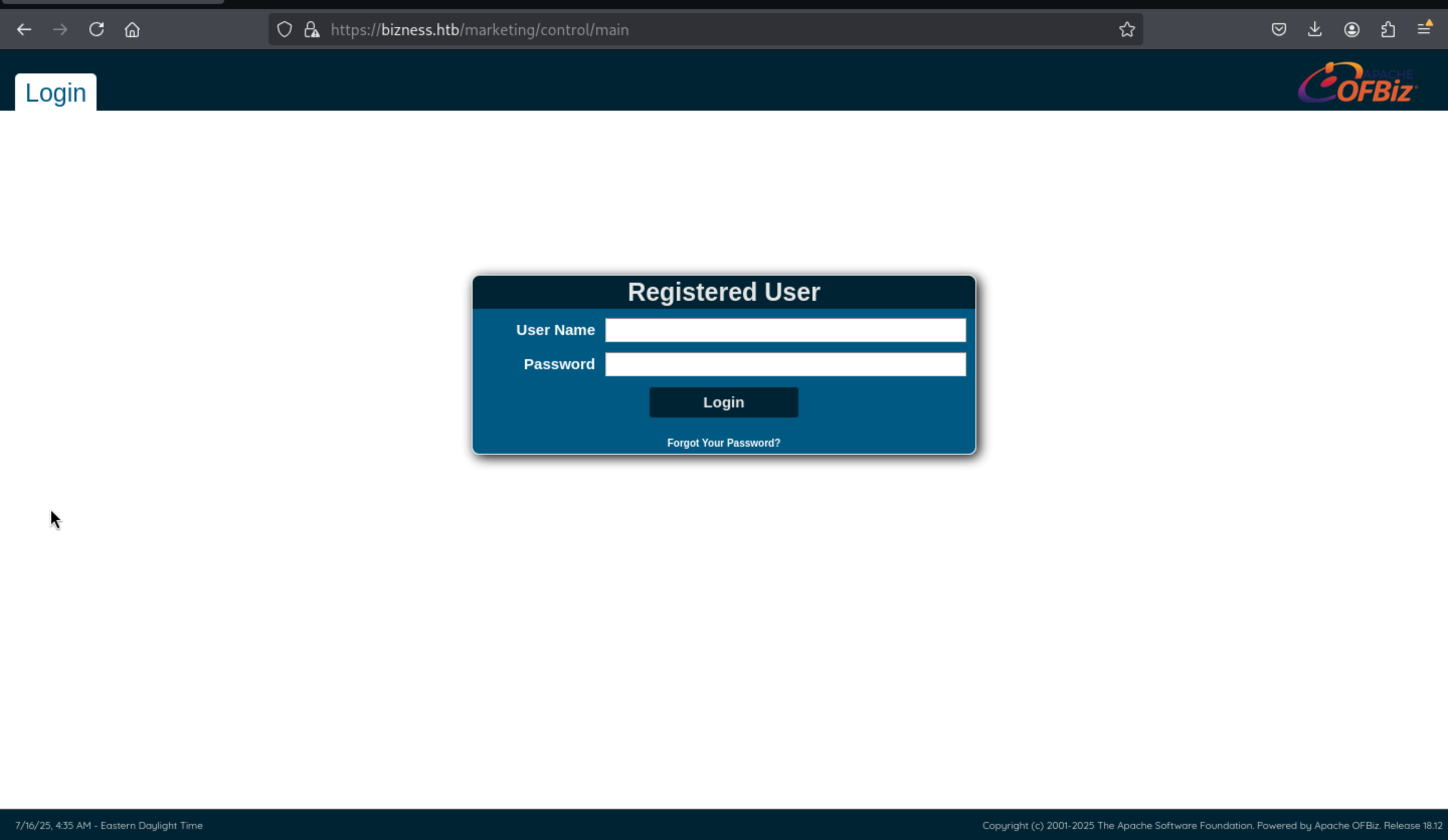 Then we can get the redirect to https://bizness.htb/marketing/control/main