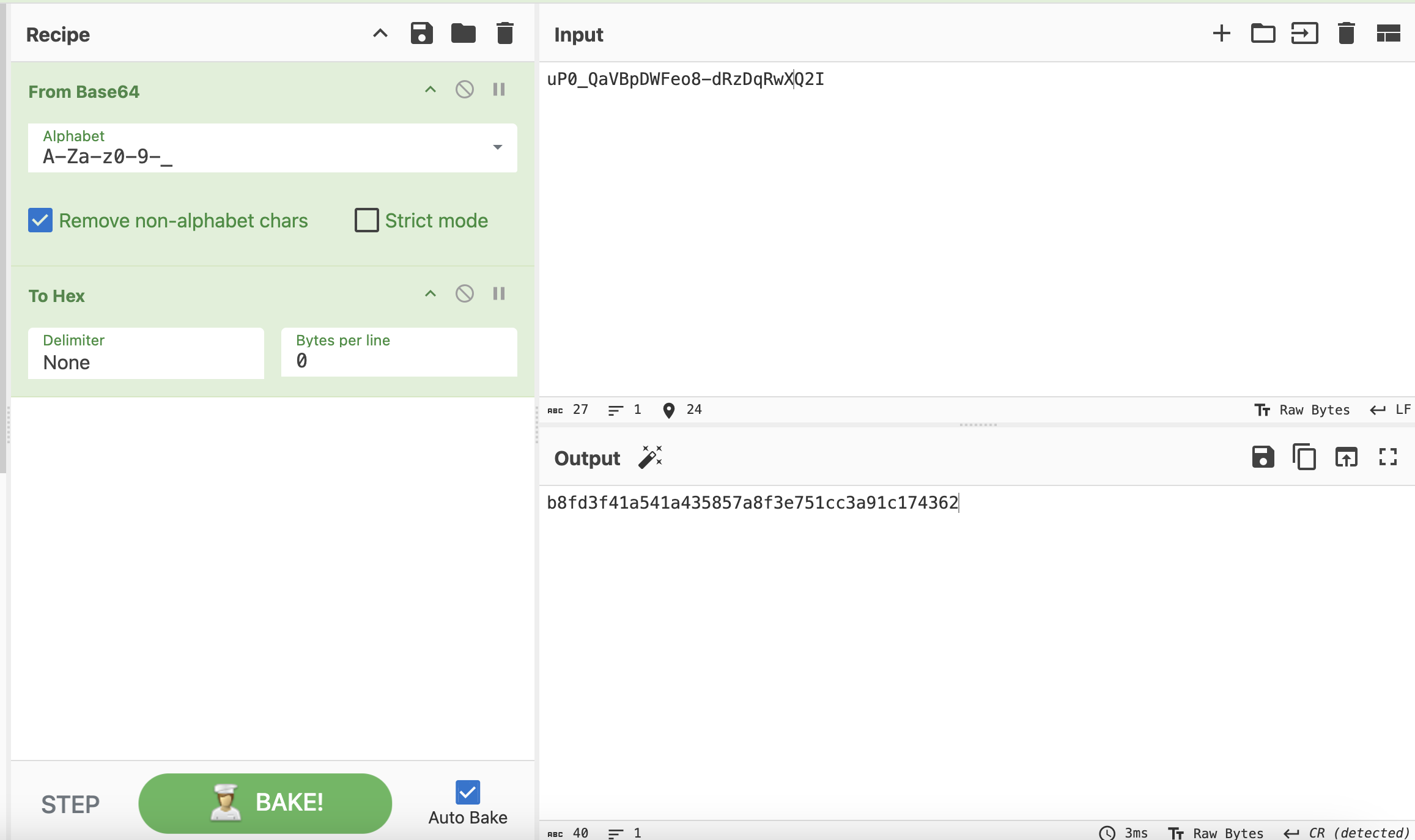 (URL-safe alphabet based on the “_”), which decodes to 20 bytes (40 hex characters):