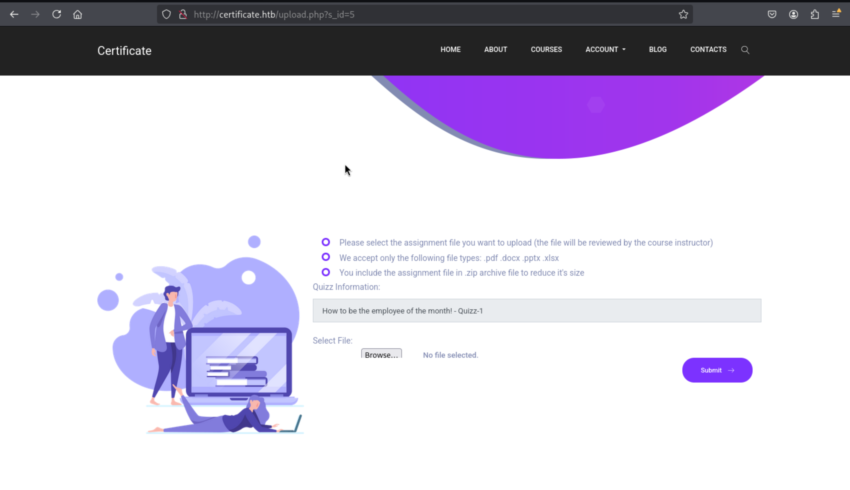 http://certificate.htb/static/uploads/8ad6b1453a685cd6a629959dcfb5039d/malicious/shell.php