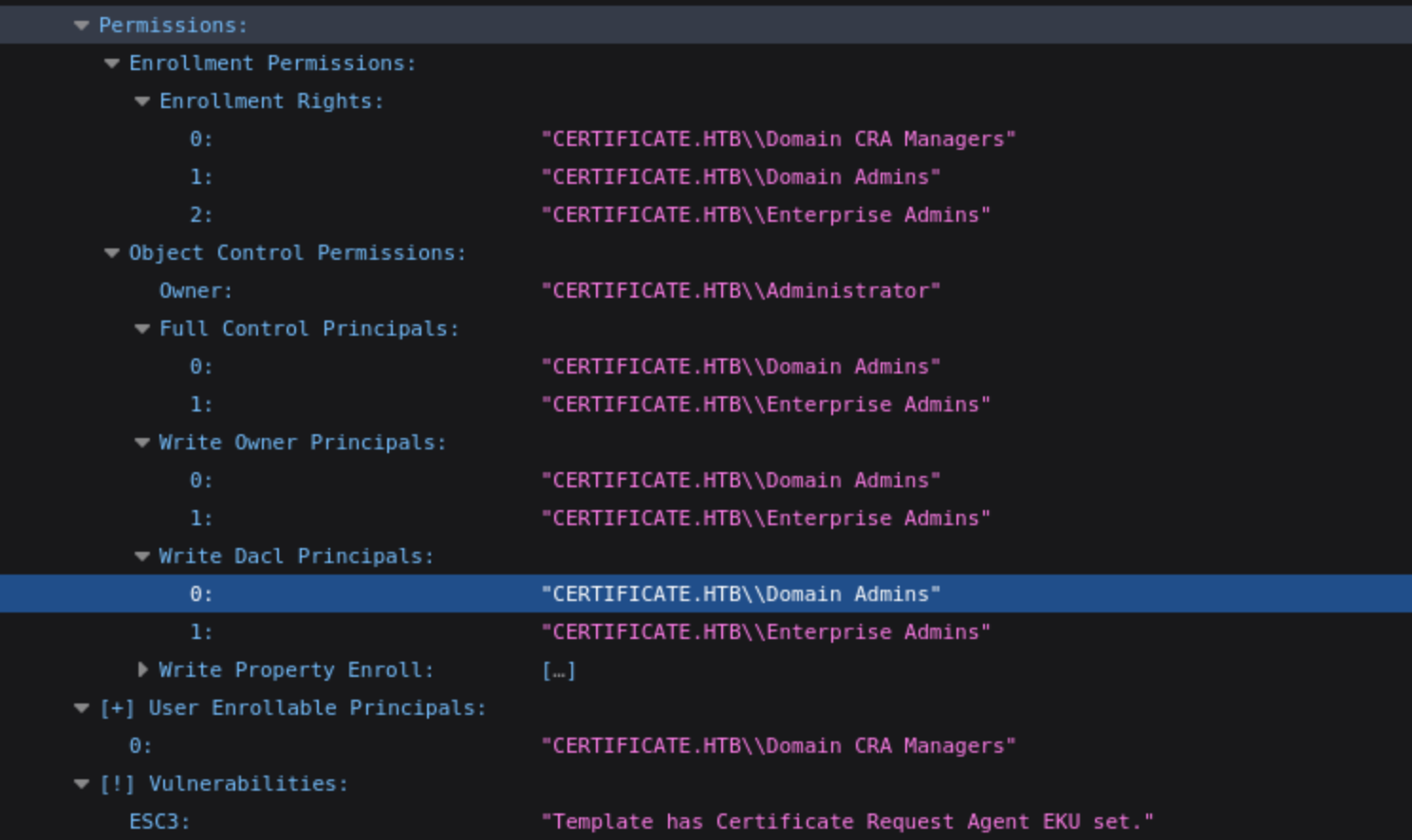 Subject: CN=Certificate-LTD-CA, DC=certificate, DC=htb