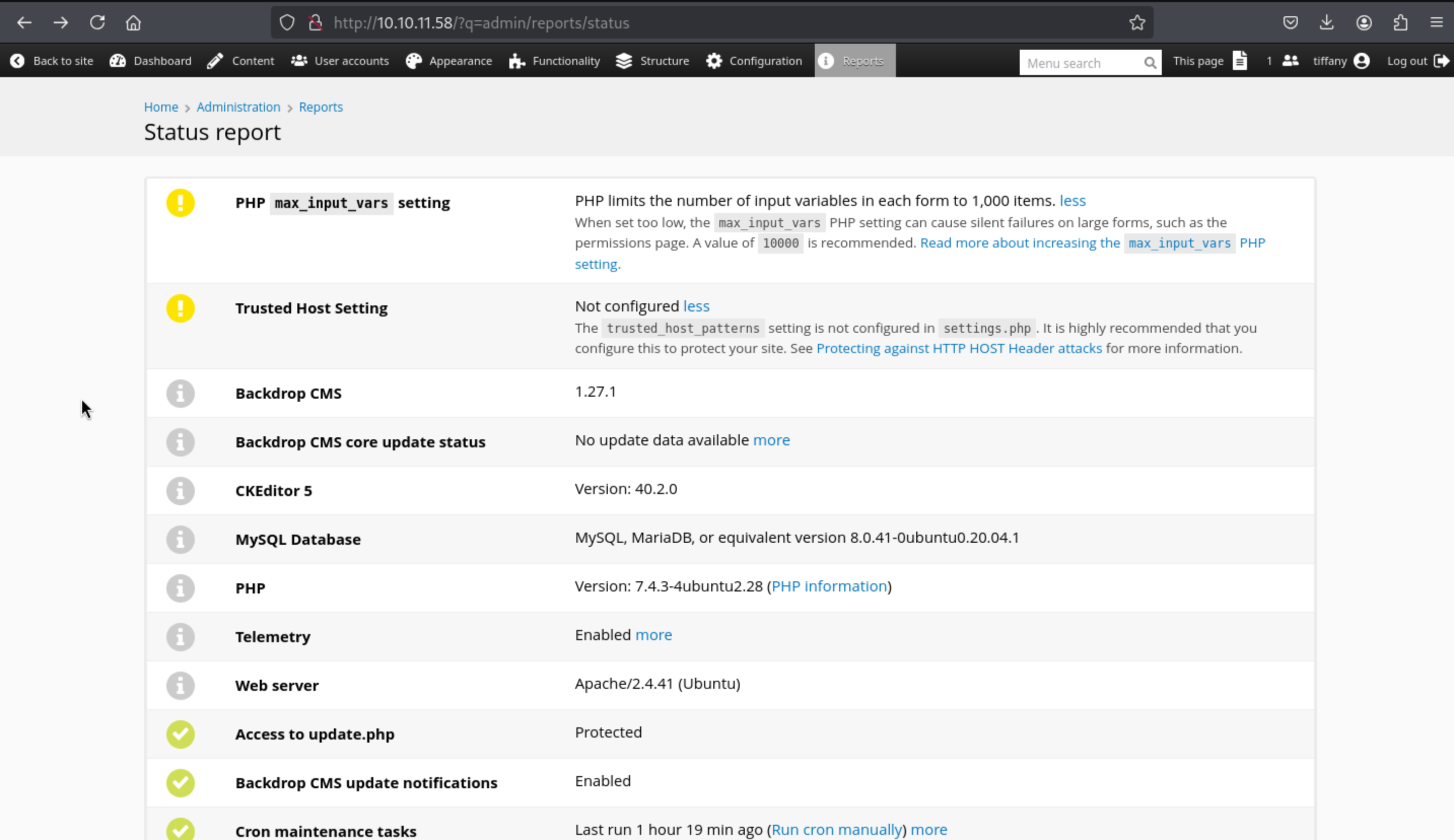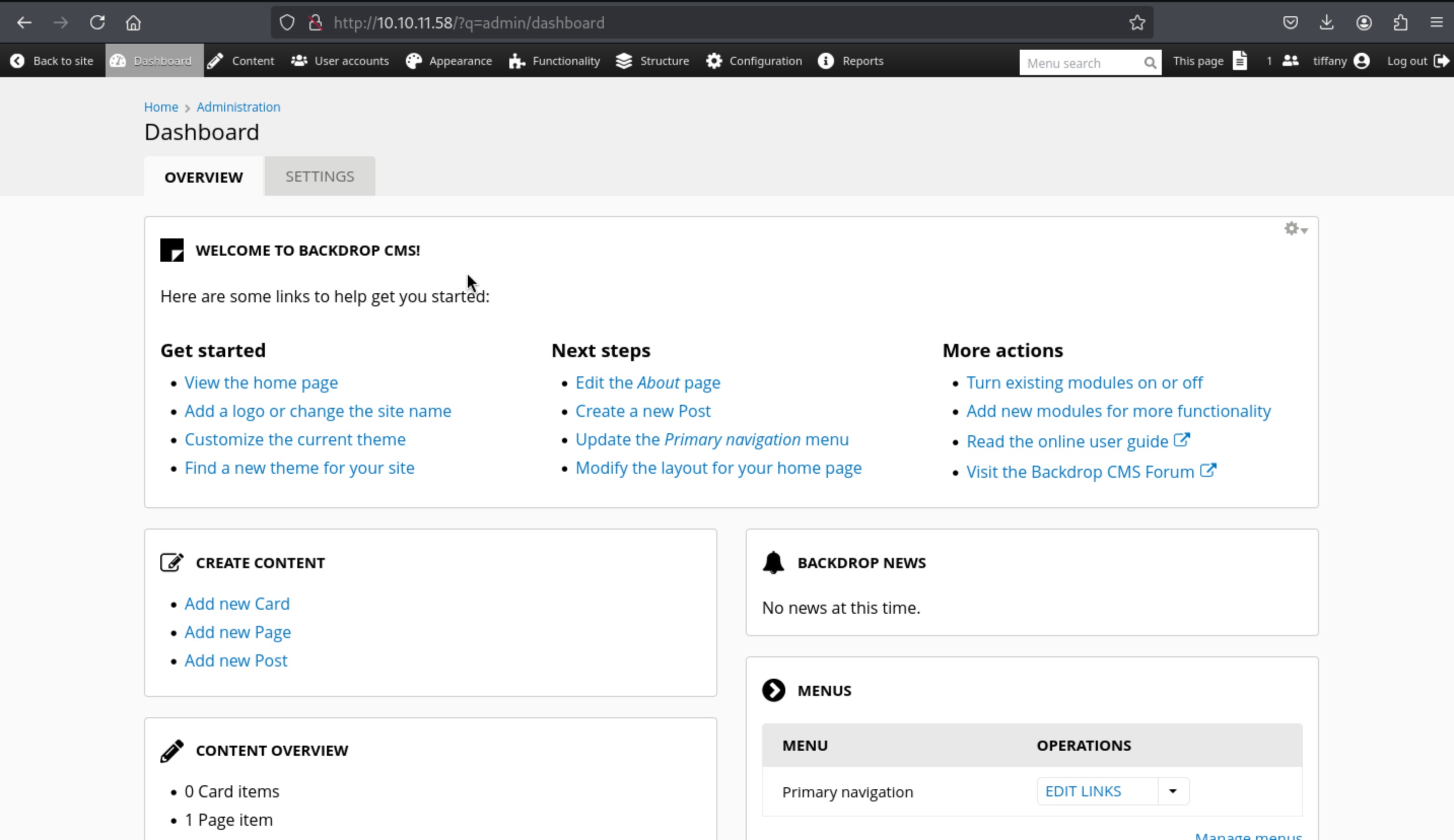 And we can also use tiffany@dog.htb:BackDropJ2024DS2024