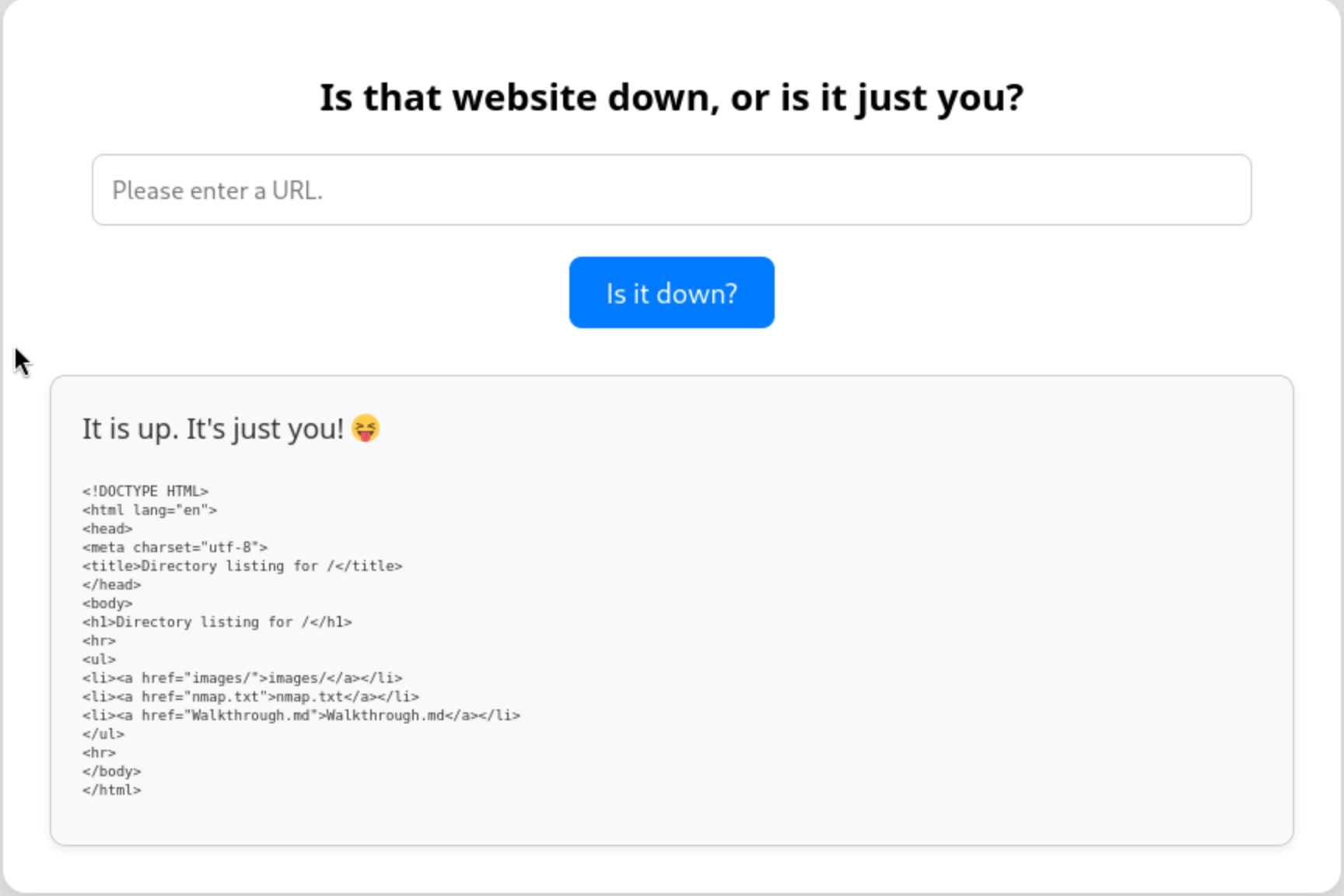 echo "<font size=+1>It is up. It's just you! 😝</font><br><br>";