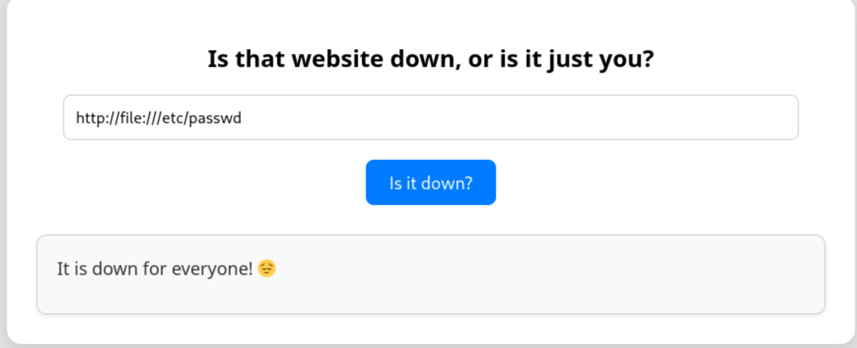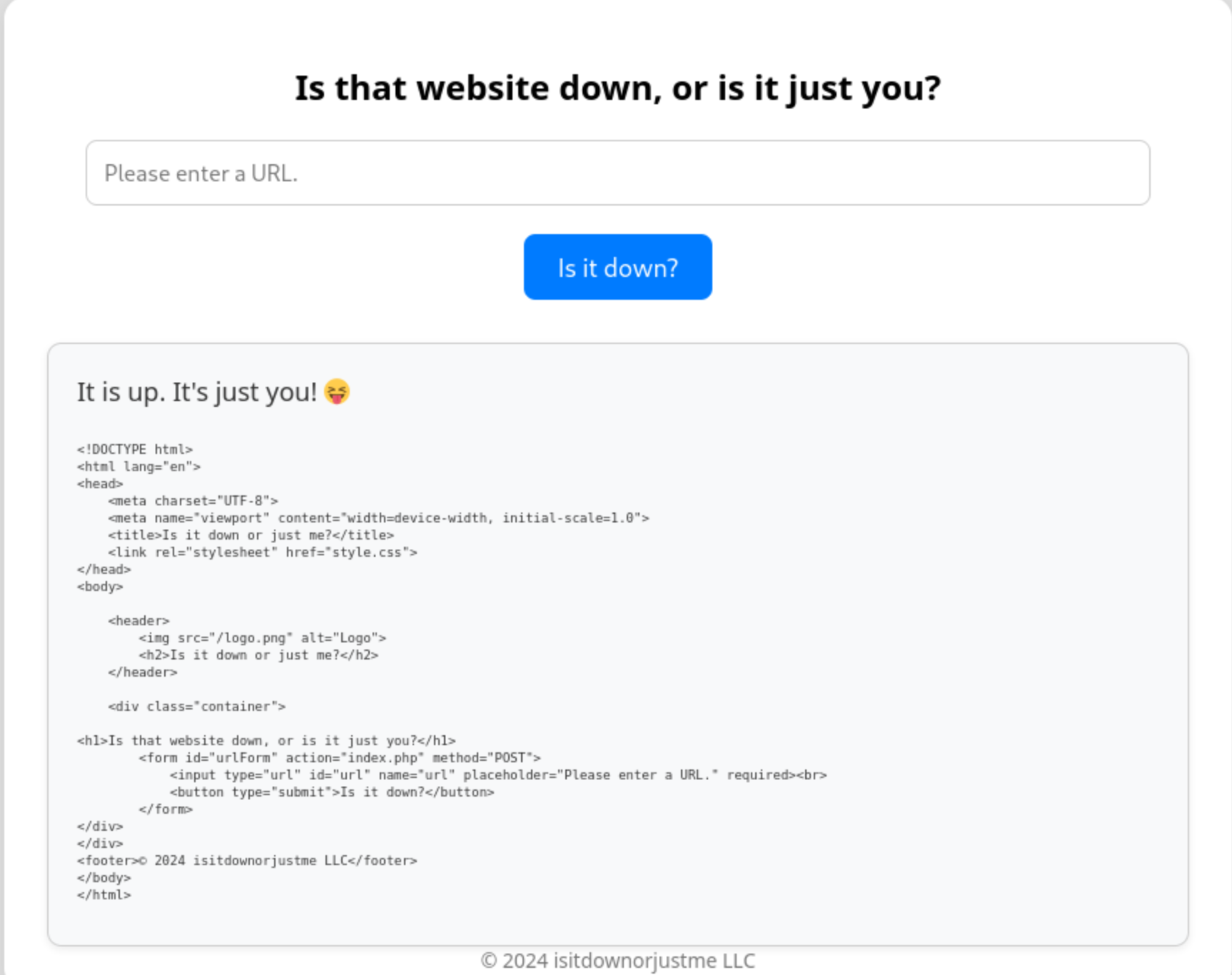 echo "<font size=+1>It is down for everyone! 😔</font><br><br>";