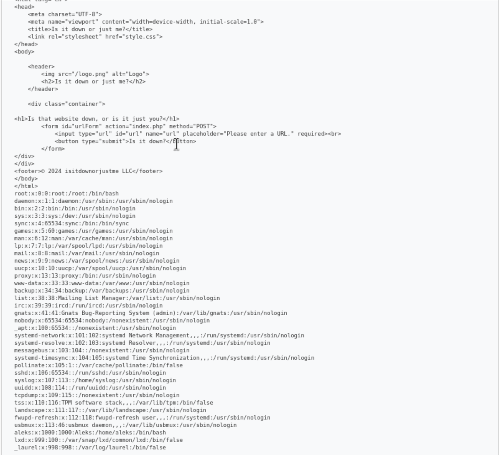 Then we can try to read the source code of this service, the default path would be /var/www/html/index.php