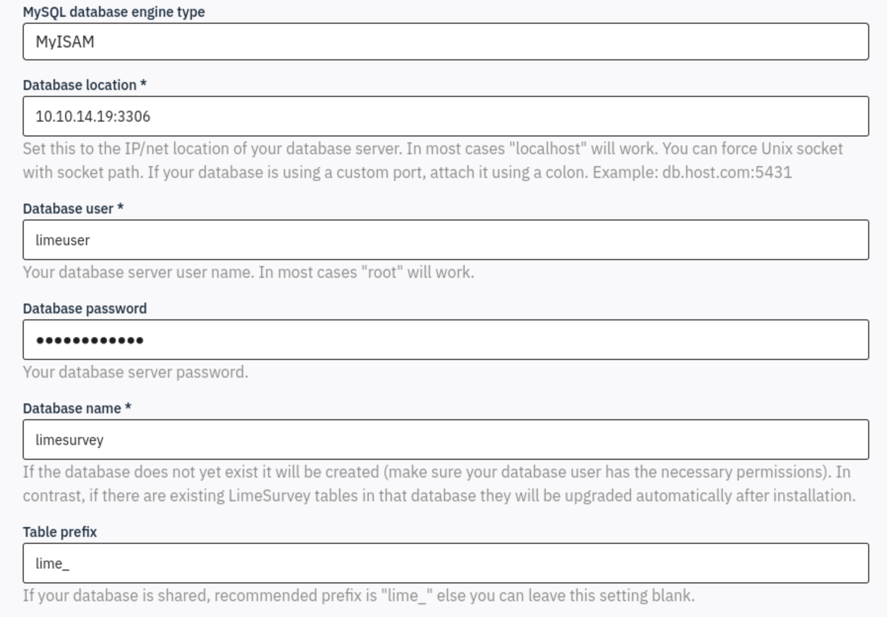 └─$ docker run --name limesurvey-mysql -e MYSQL_ROOT_PASSWORD=rootpass123 -e MYSQL_DATABASE=limesurvey -e MYSQL_USER=limeuser -e MYSQL_PASSWORD=limepassword -p 3306:3306 -d mysql:latest