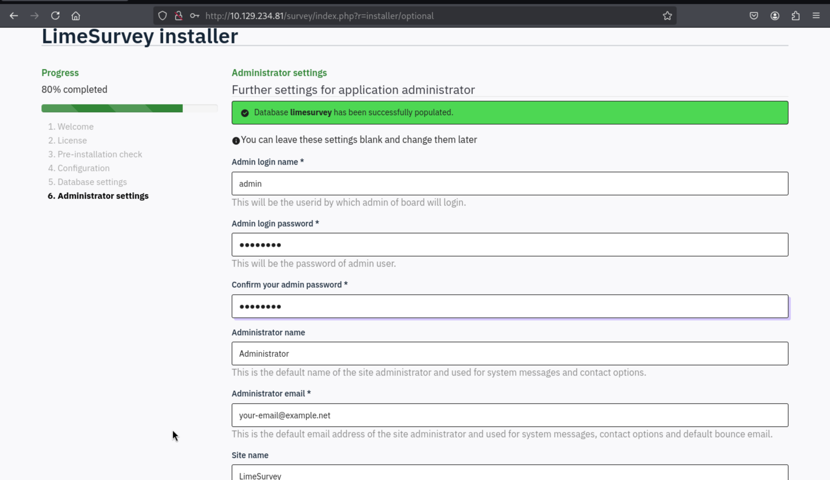 We can find a password LIMESURVEY_PASS=5W5HN4K4GCXf9E