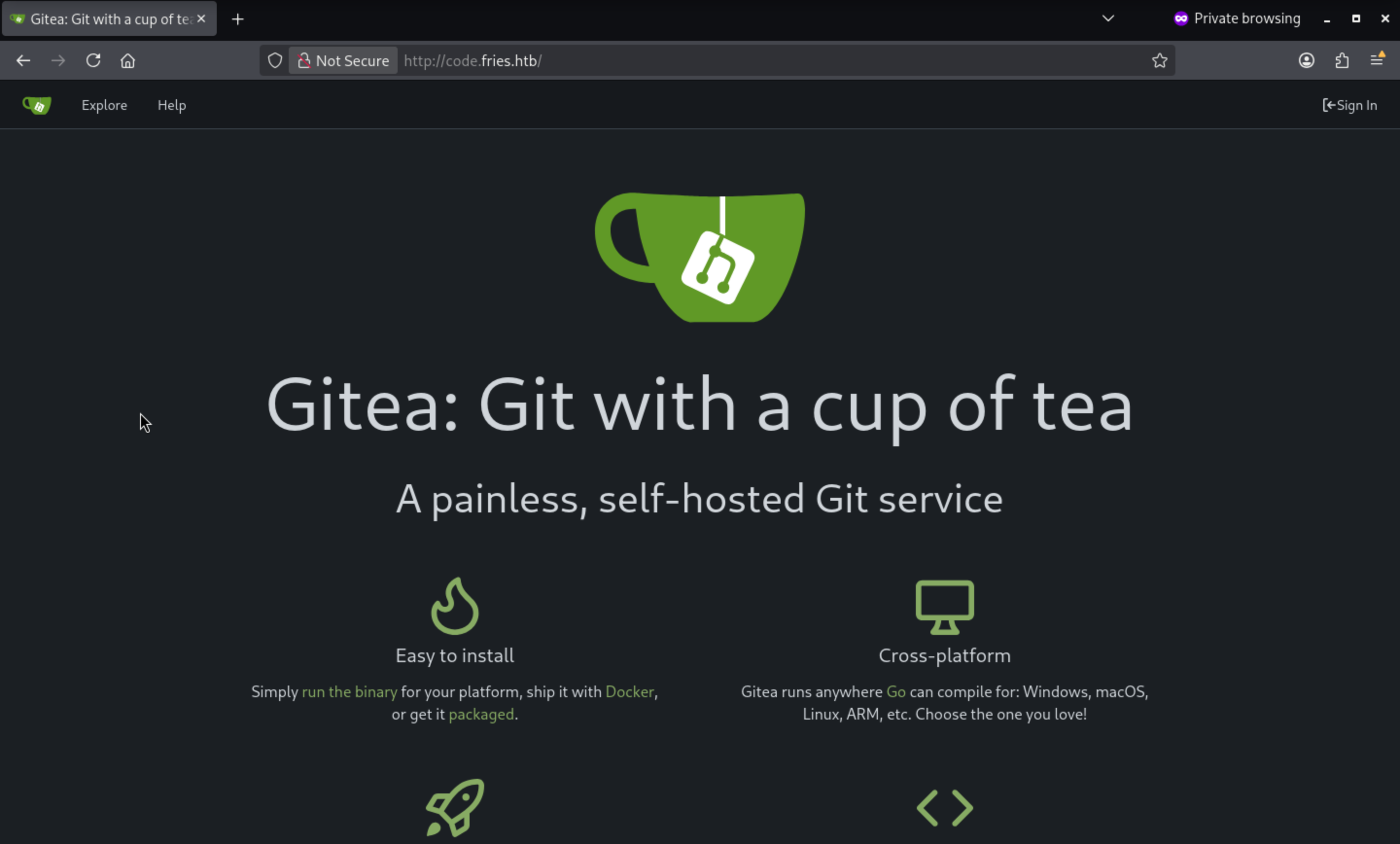 There is a giteaservice here from code.fries.htb
