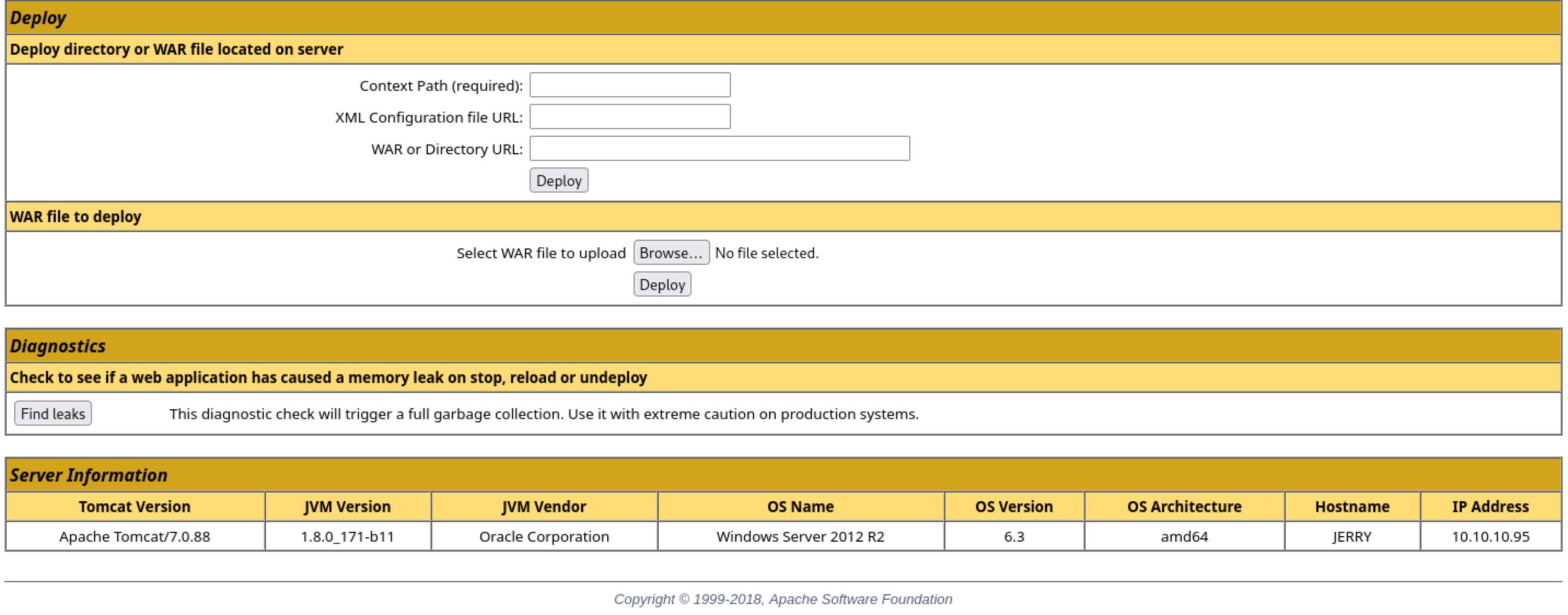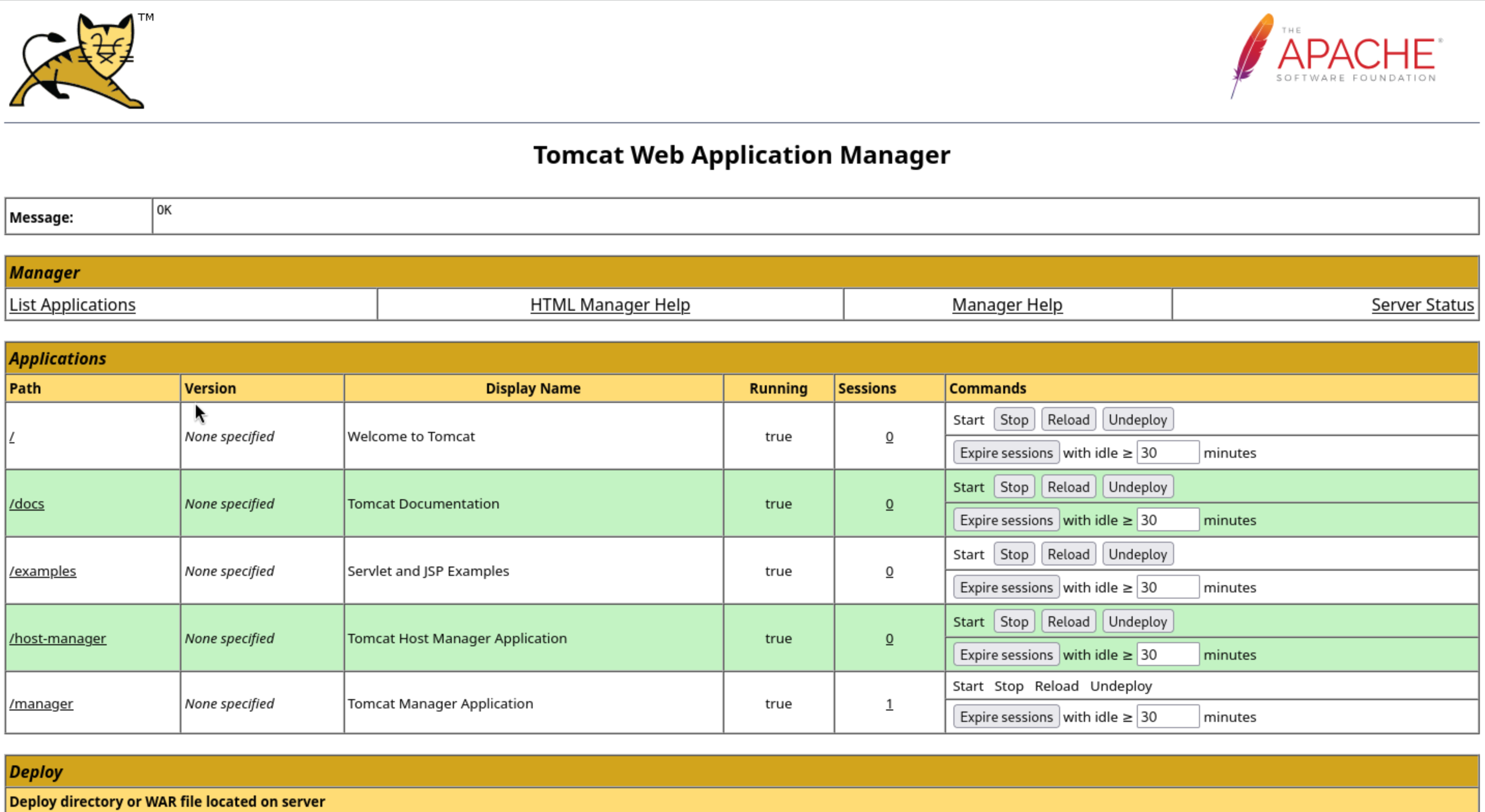 But in the bottom of this page, we can deploy a war file here.