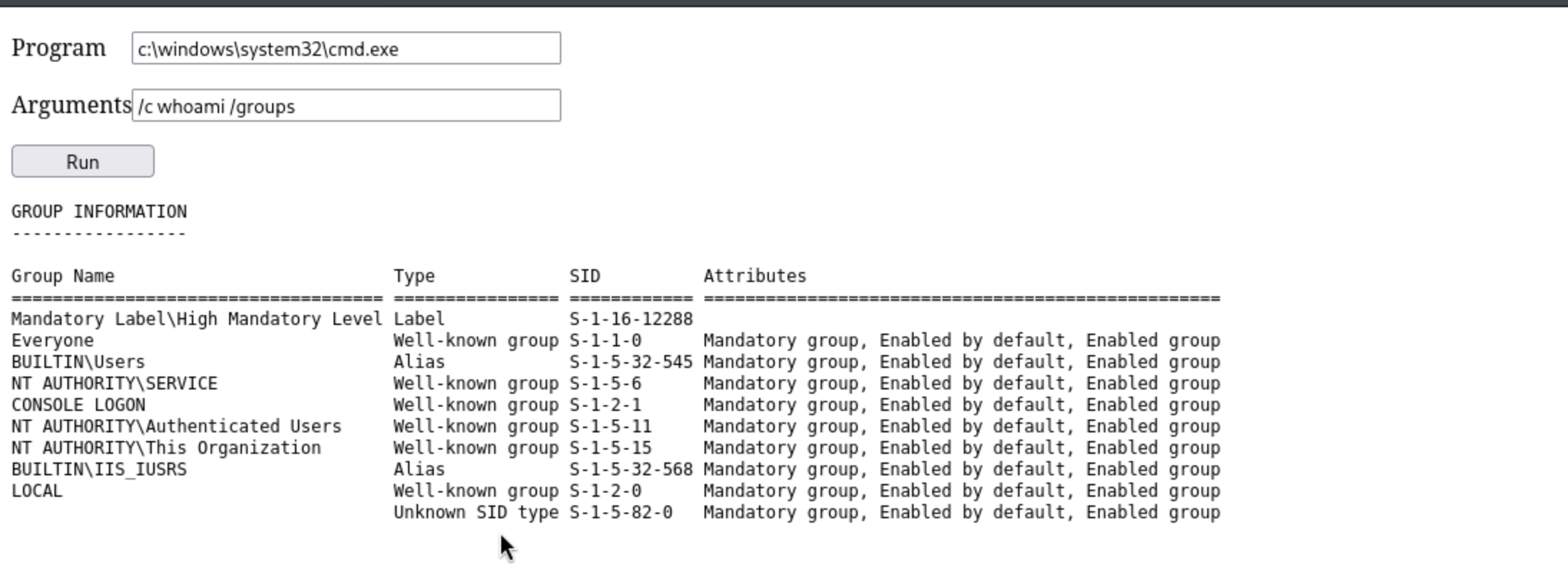 NT AUTHORITY\INTERACTIVE Well-known group S-1-5-4 Mandatory group, Enabled by default, Enabled group