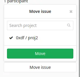 After submitting that, expand the menu on the right side, and at the bottom of it I’ll find “Move issue”, where I can select proj2: