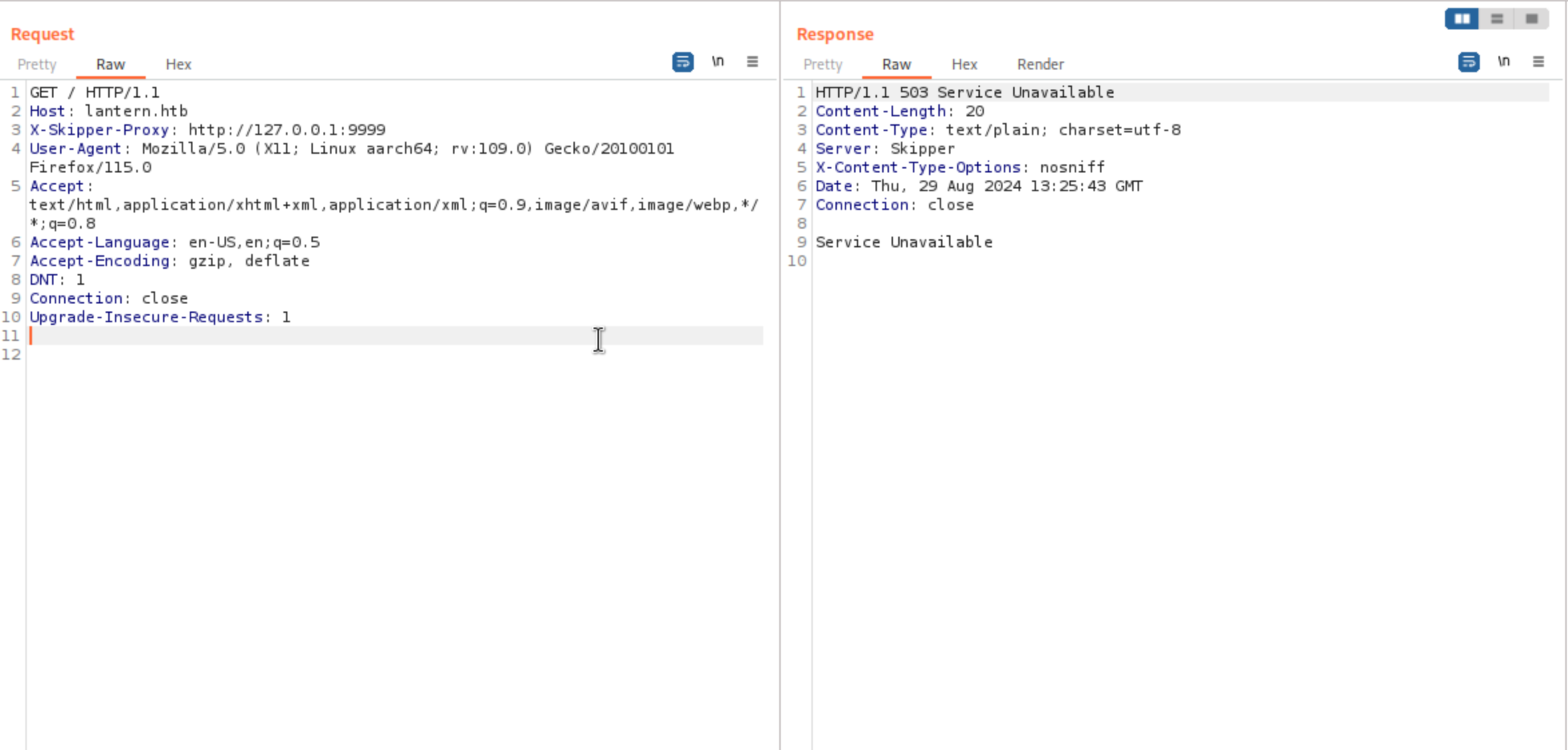 The testing procedure is simple—add an specific header (X-Skipper-Proxy) to the http request. We can do it in BurpSuite: