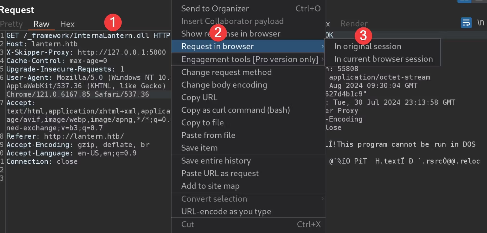 Same step as we did in Blazorized box, copy the URL from Burp to browser, download the DLL file: