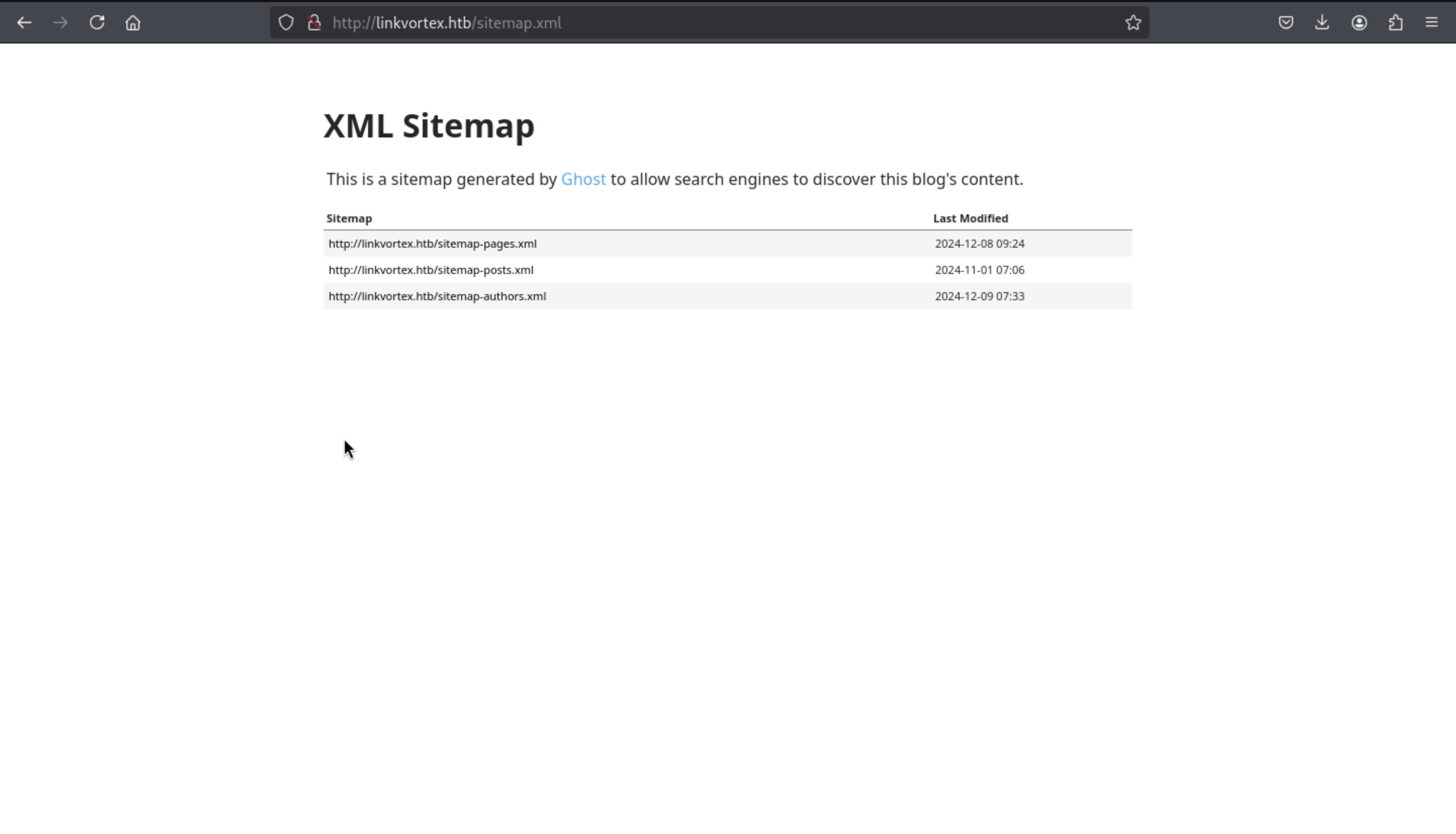 Sitemap: http://linkvortex.htb/sitemap.xml