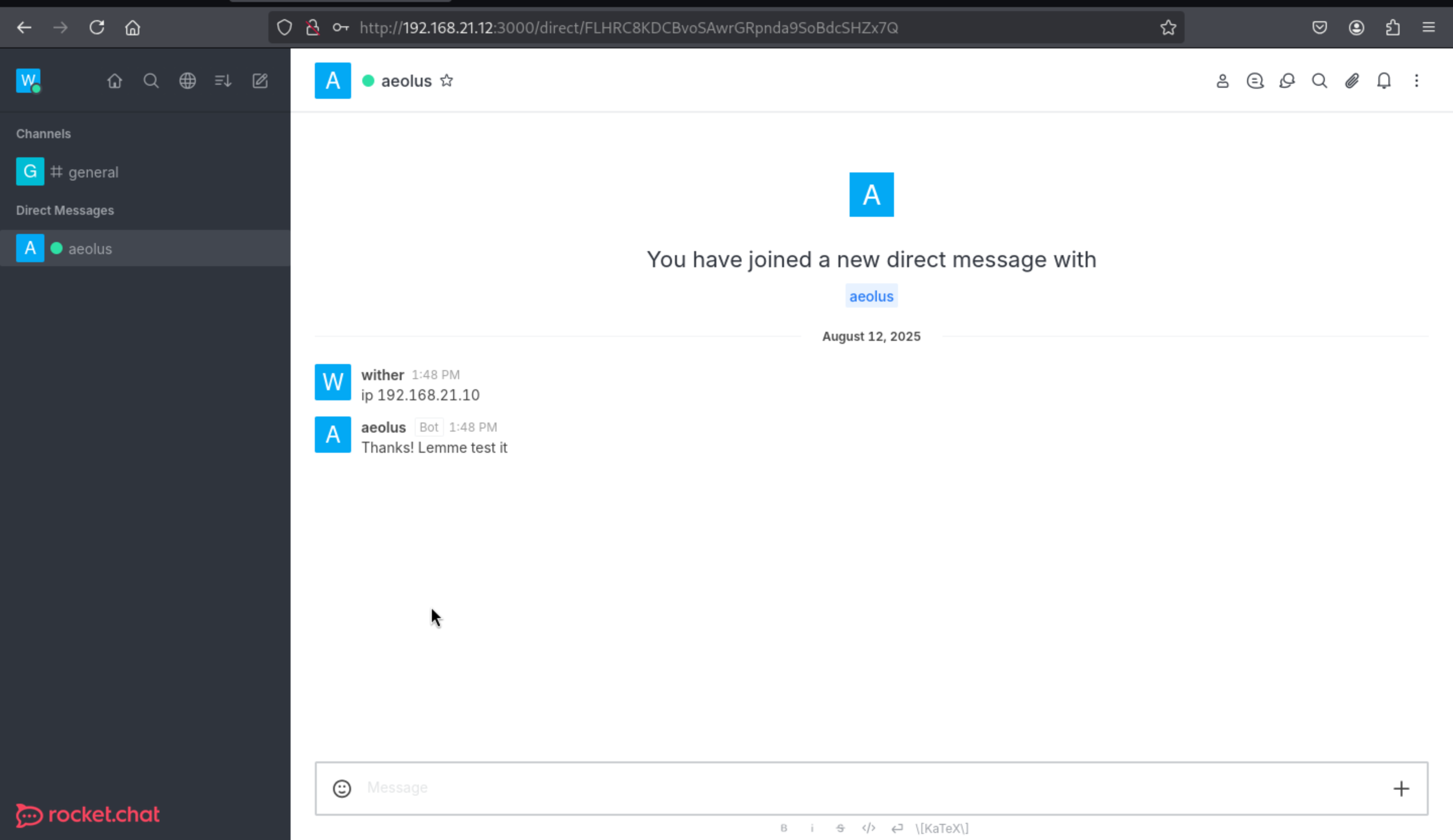Once created, we send it to 192.168.21.11, the program running on port 3000 in the script we saw earlier.