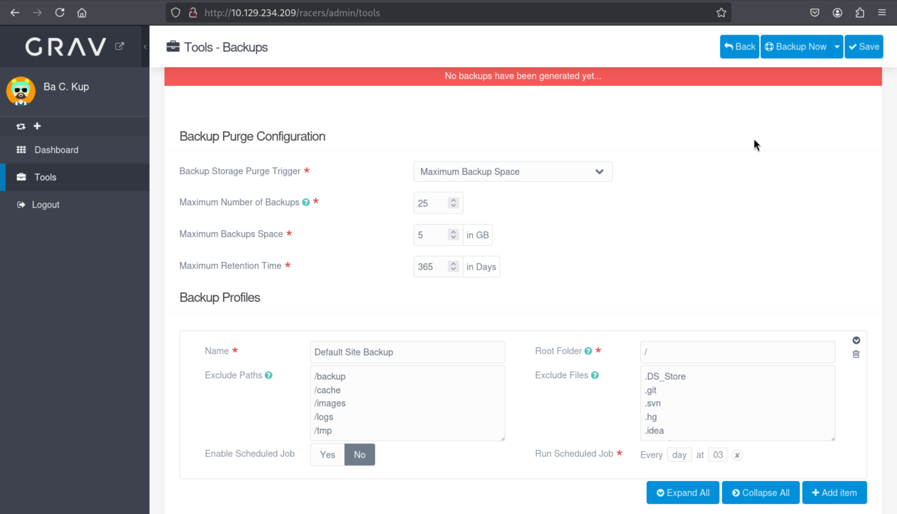 backup [Status: 301, Size: 324, Words: 20, Lines: 10, Duration: 290ms]