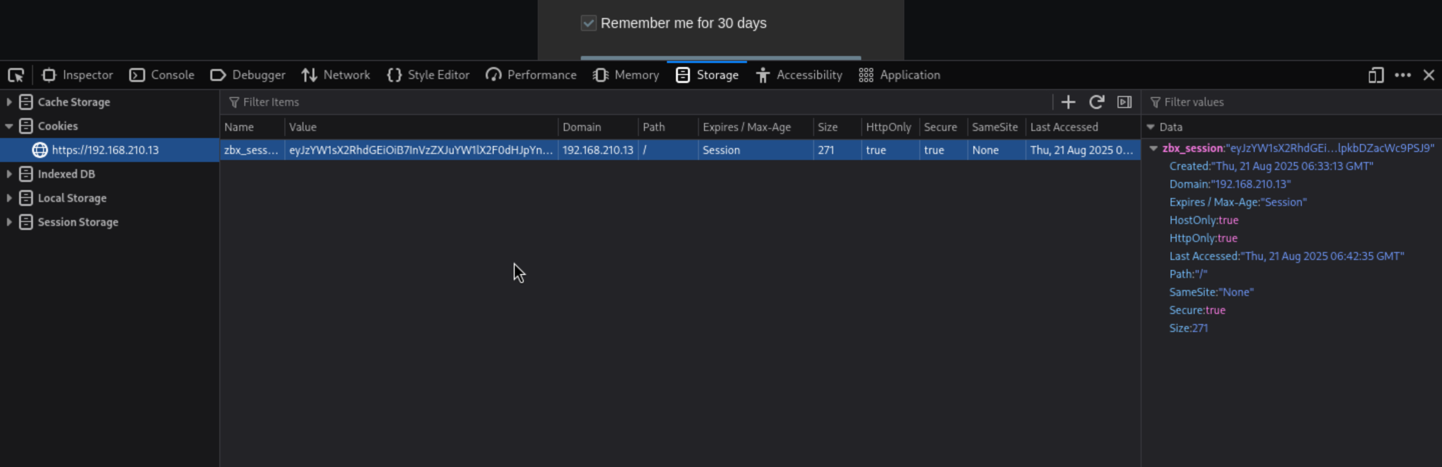 └─$ python3 zabbix_session_exp.py -t https://192.168.210.13/ -u admin
