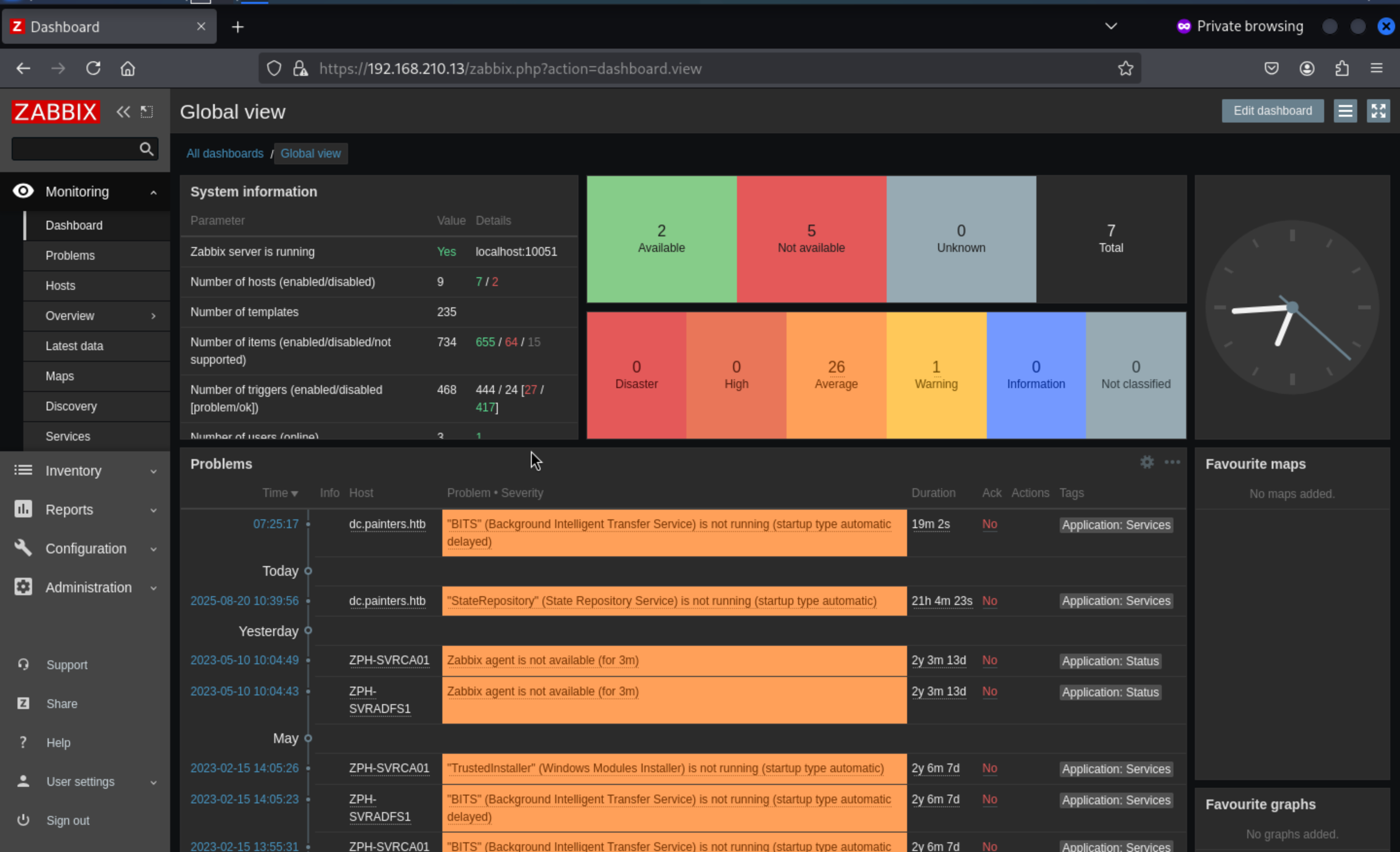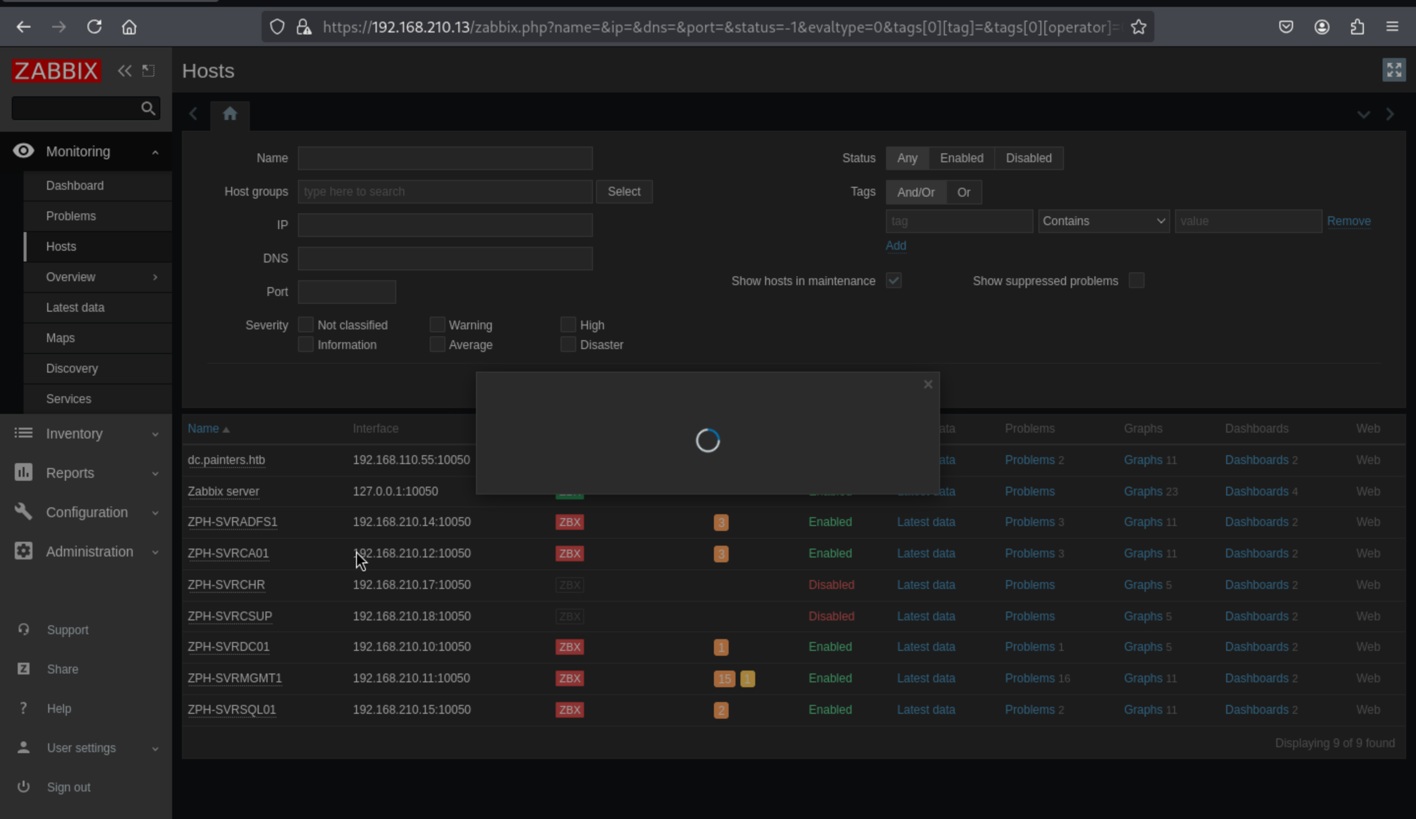 | 1 | Admin | Zabbix | Administrator | $2y$10$BH90bGVo2lv948WpM1haruzrBgVCpzEL5av9BPCewd/Q2pM1Ybl.q | | 1 | 0 | default | 30s | default | 0 | 192.168.210.100 | 1647985367 | 50 | default | 3 |