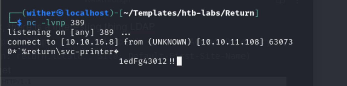 389/tcp open ldap Microsoft Windows Active Directory LDAP (Domain: return.local0., Site: Default-First-Site-Name)