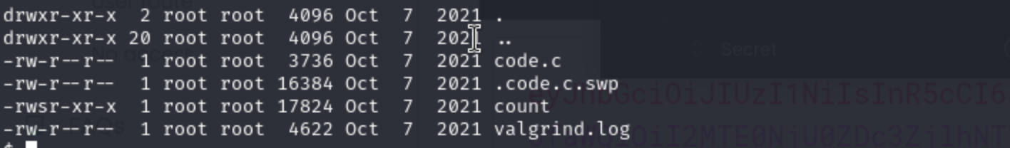 count is a SUID binary, which means it will run as it’s owner regardless of who runs it. In this case, that user is root. Running it prompts for a filename: