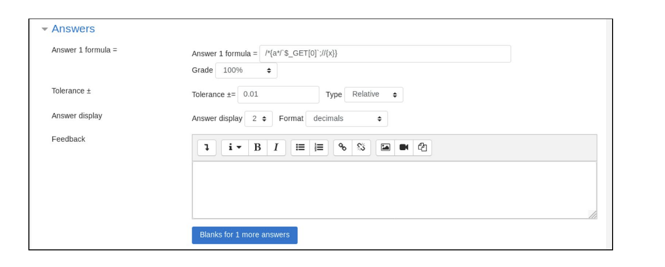 CVE-2018-1133 was a vulnerability that allows any user in the teacher role to get remote code execution through Moodle. The vulnerability is in the part of the code that allows a teacher to define a problem like “What is {x} + {y}?”, and have different x and y for each student. Moodle picks a random x and y, and then gets the answer by calling php’s eval() on the formula input. So if I can poison the input, I can get it to run my code. The post gives the following string that will give execution and bypass filters: