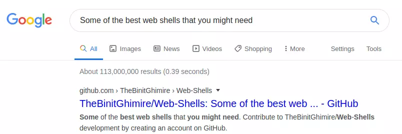 I kicked off a gobuster in the background, but it wouldn’t find anything. I googled the term “Some of the best web shells that you might need”, and the top hit was a nice match: