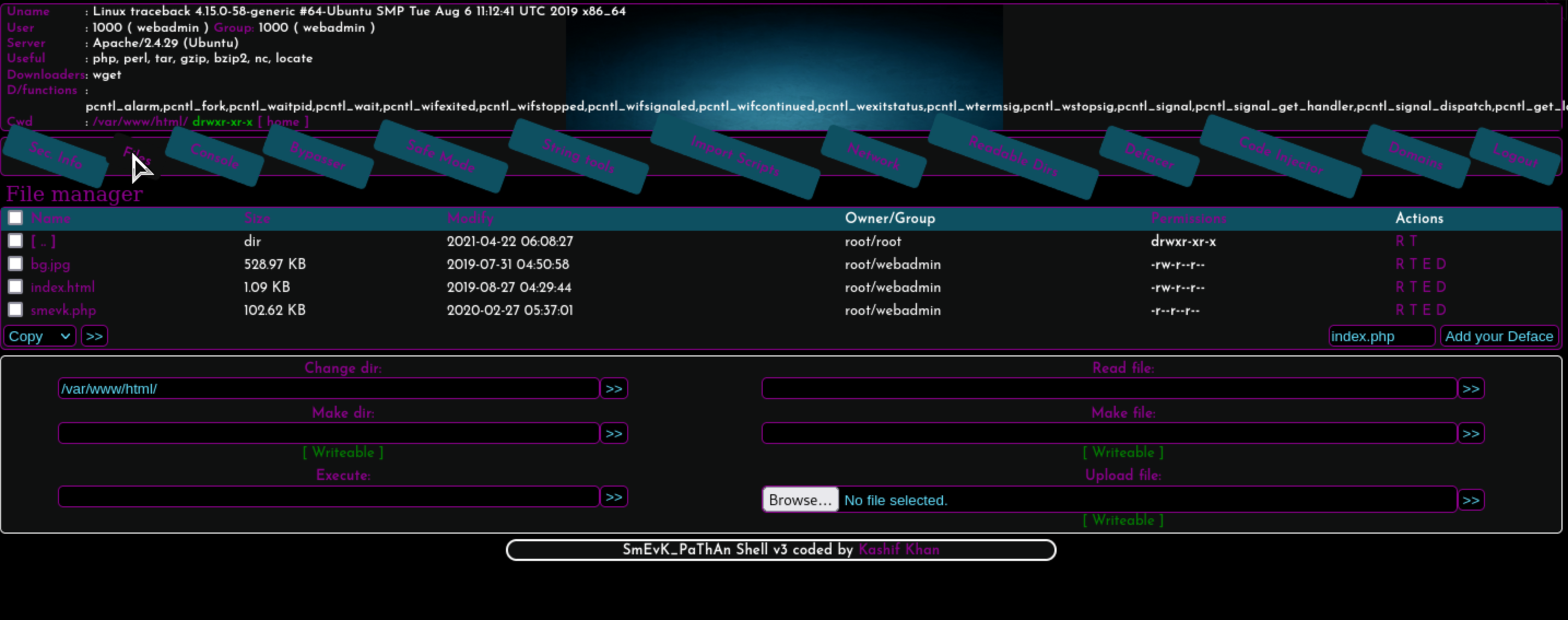 To be honest, this web shell is so cool and attractive, so many interesting parts and modules, but for us, we only need to handle a reverse shell.
