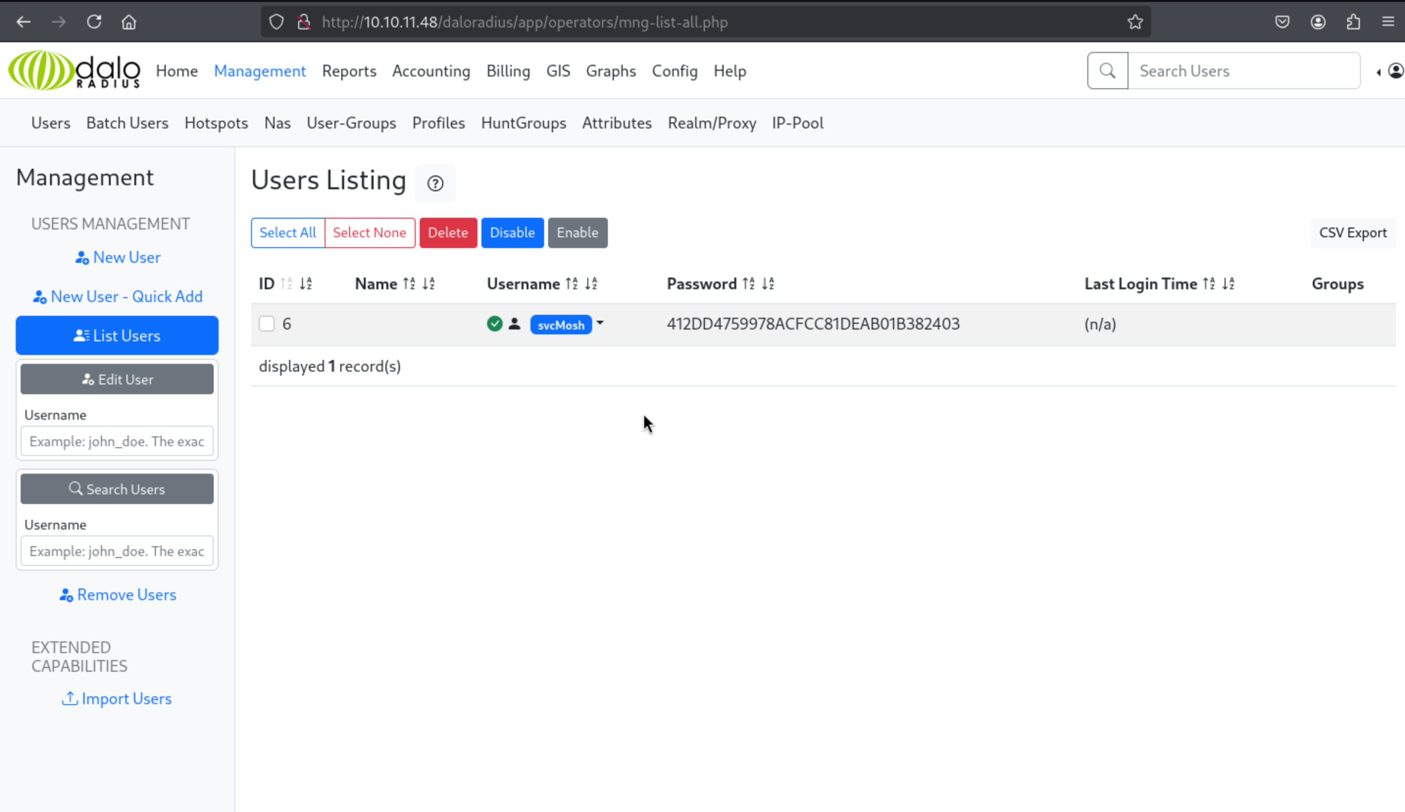 , but it did not work.Then I continue to check the issues of this service, I found another default credit administrator:radius