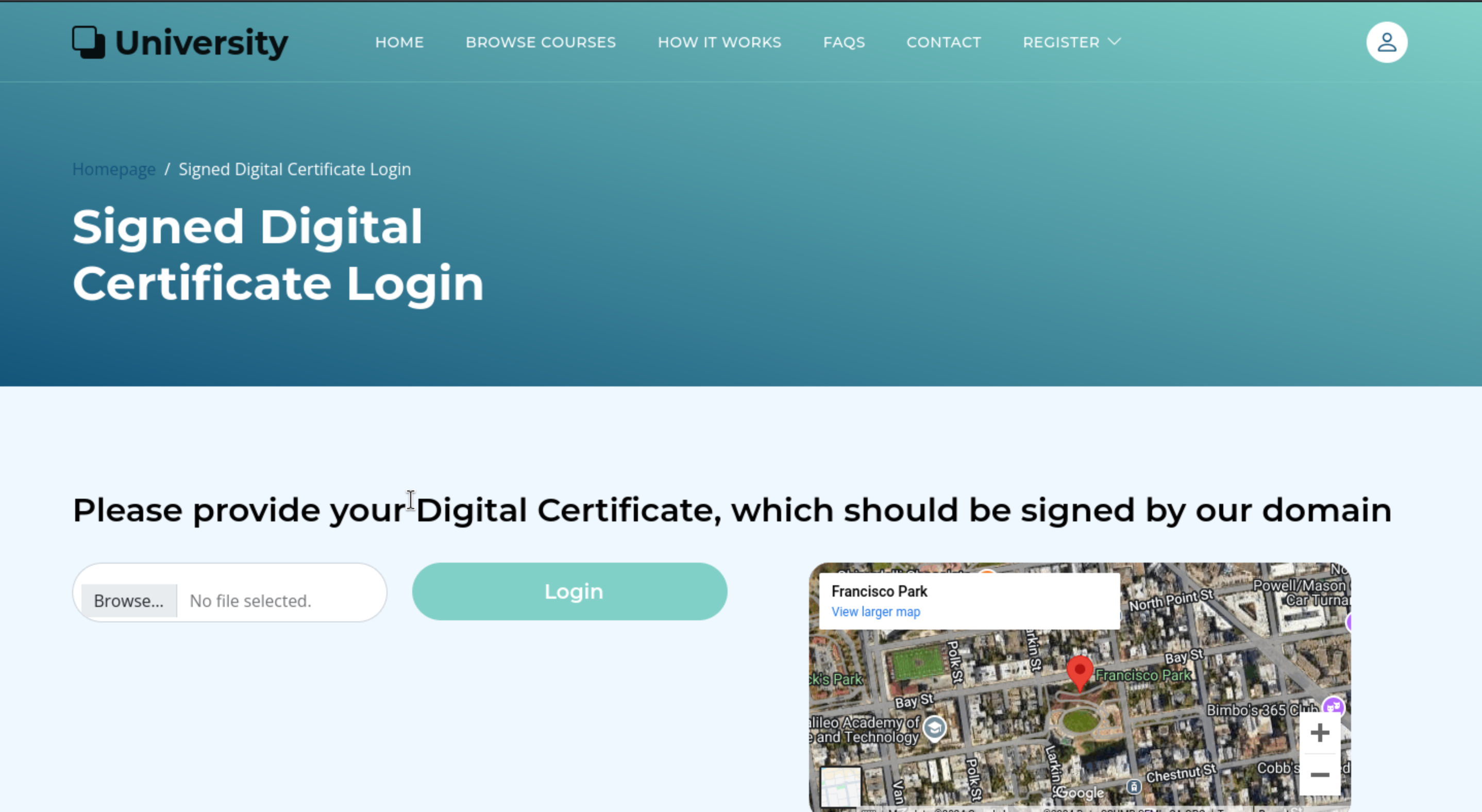 This page gives us a way to login with digital certificate.