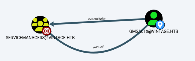 memberOf: CN=ServiceManagers,OU=Pre-Migration,DC=vintage,DC=htb