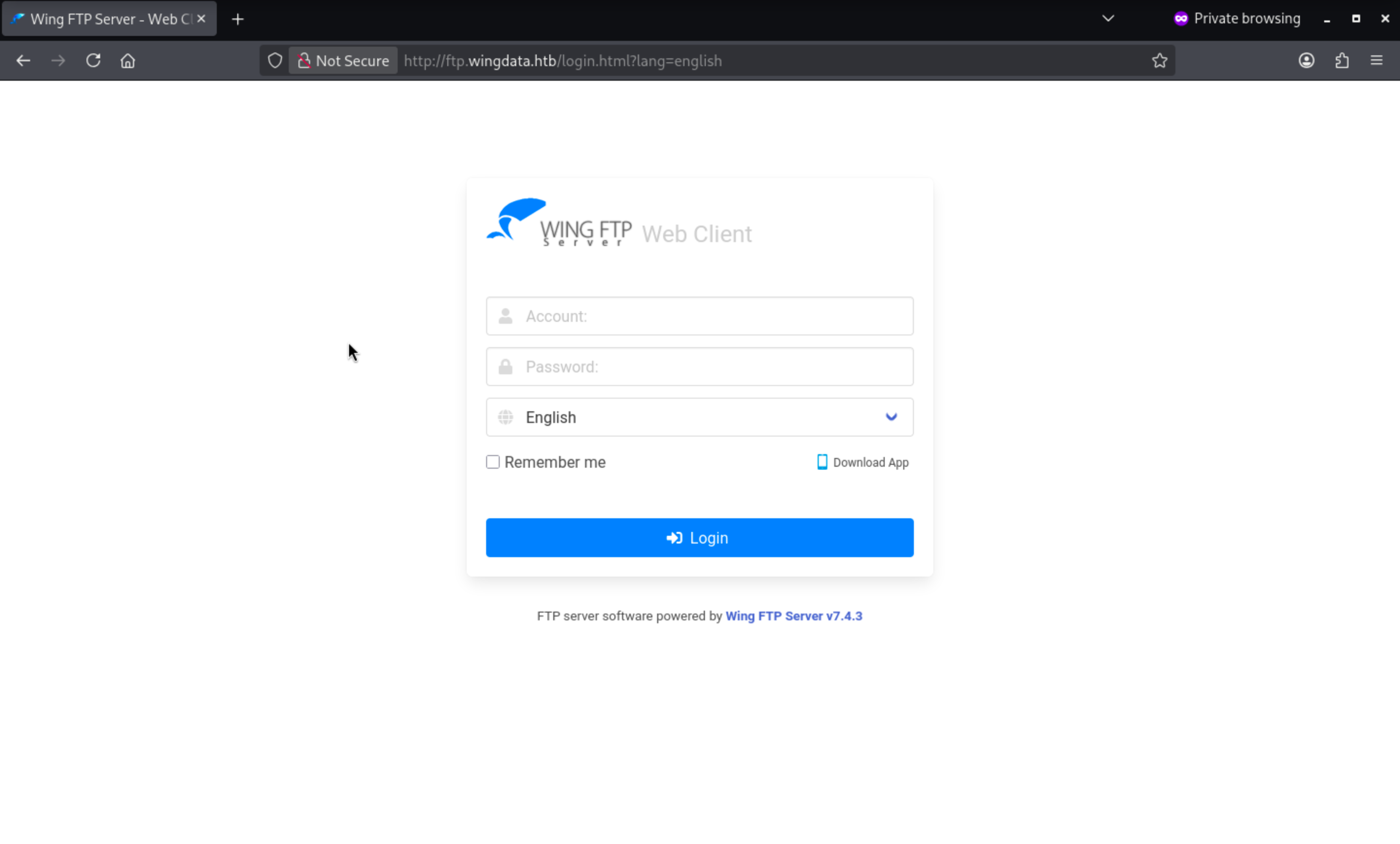 We can clearly find the version of this service Wing FTP Server v7.4.3